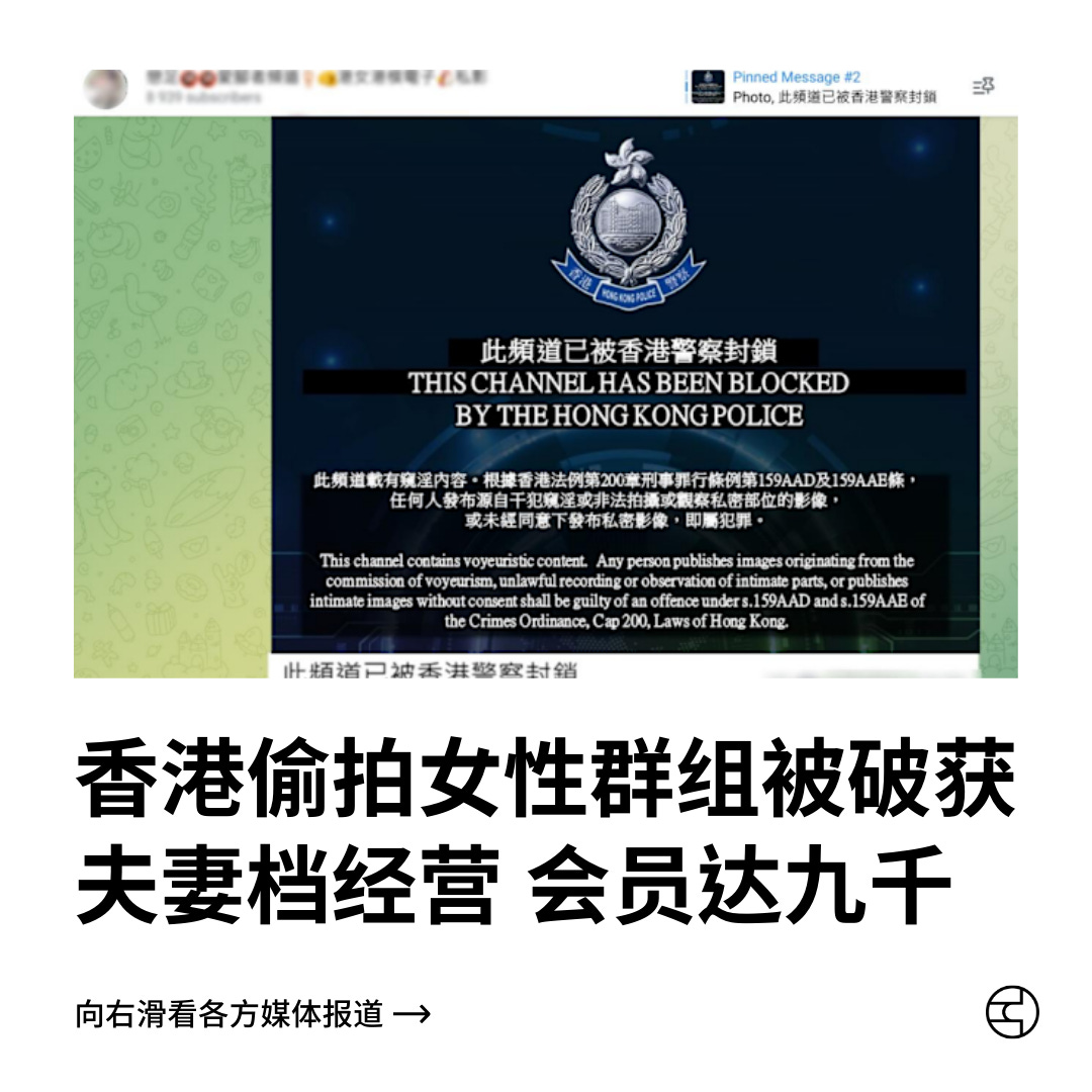 香港偷拍女性群组被破获 夫妻档经营 会员达九千