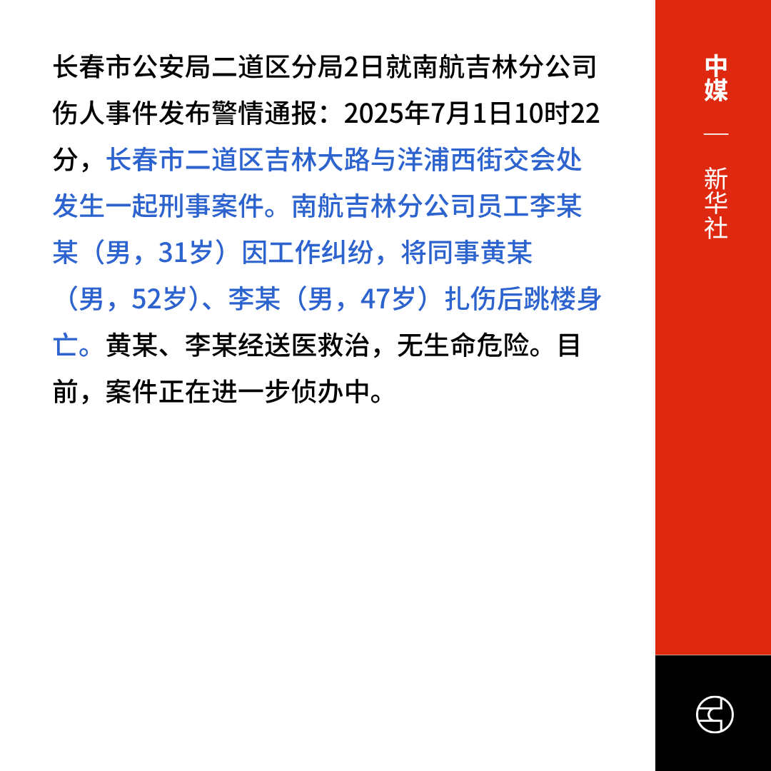《新华社》长春警方通报南航吉林分公司伤人事件