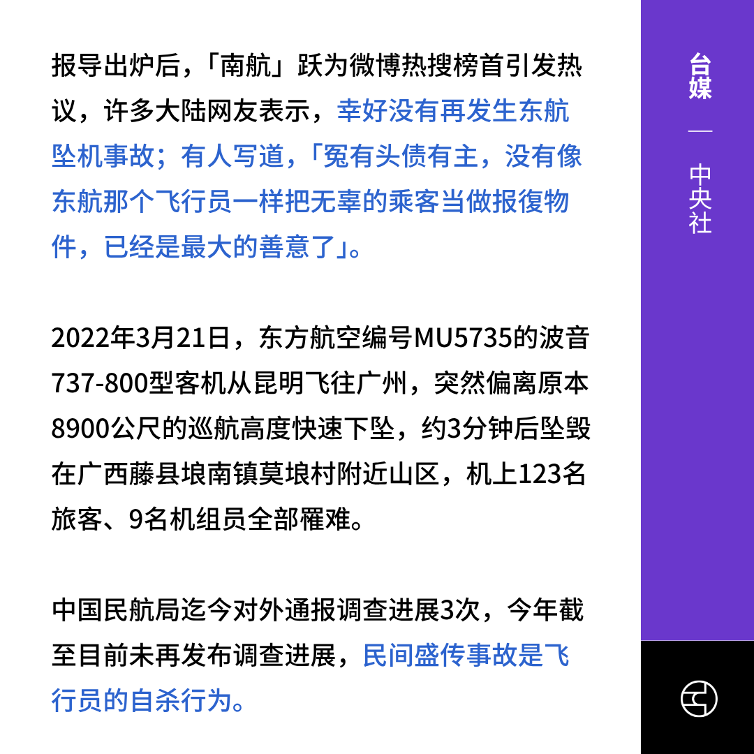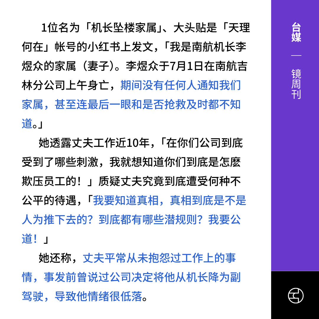 《Yahoo新聞》南航機師刺傷高層後身亡 妻子喊要公道:最後一眼、是否及時搶救都不知