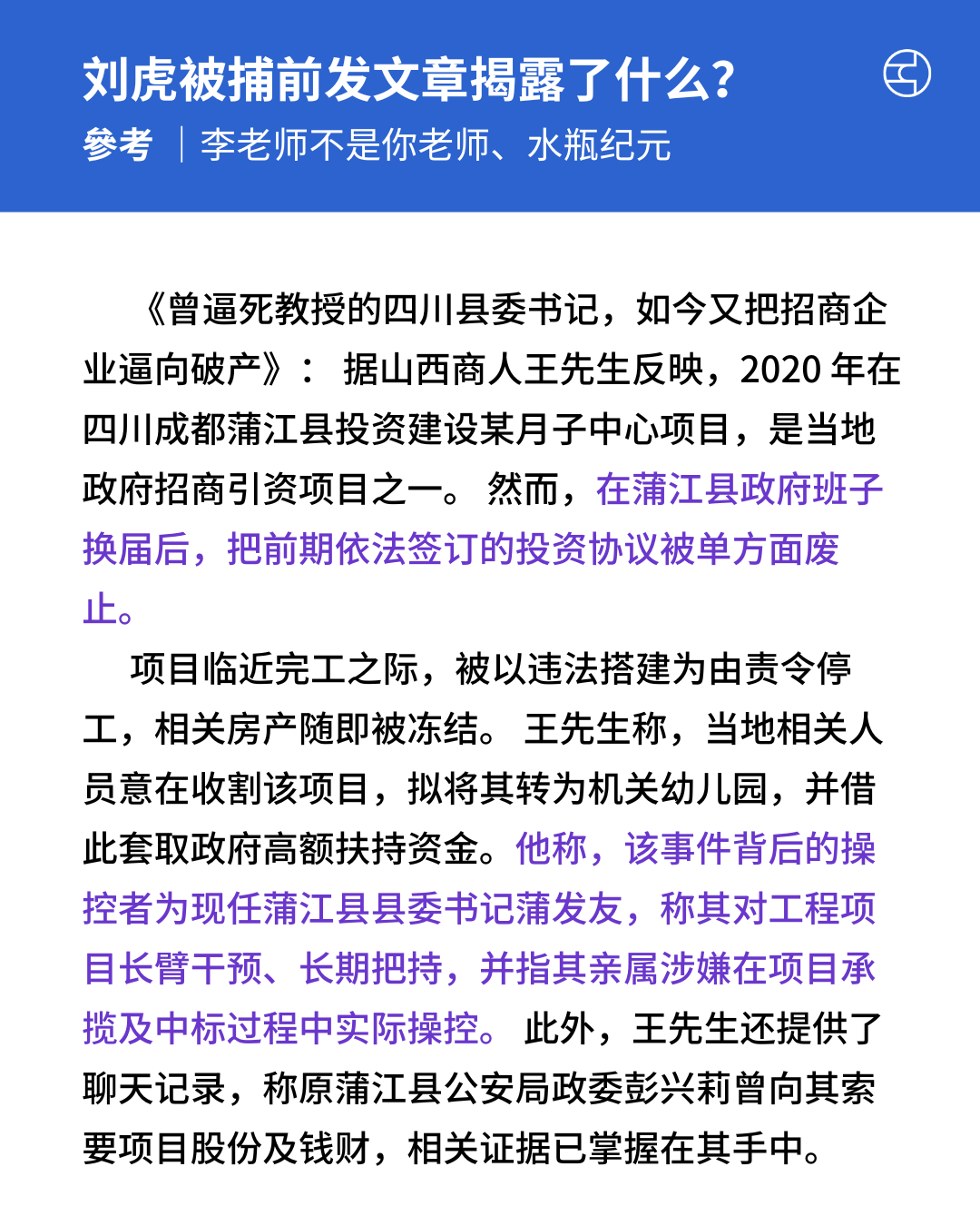 《水瓶纪元》【404文库】水瓶纪元|“最后的调查记者”刘虎或因揭露蒲江县委书记涉贪腐被刑拘