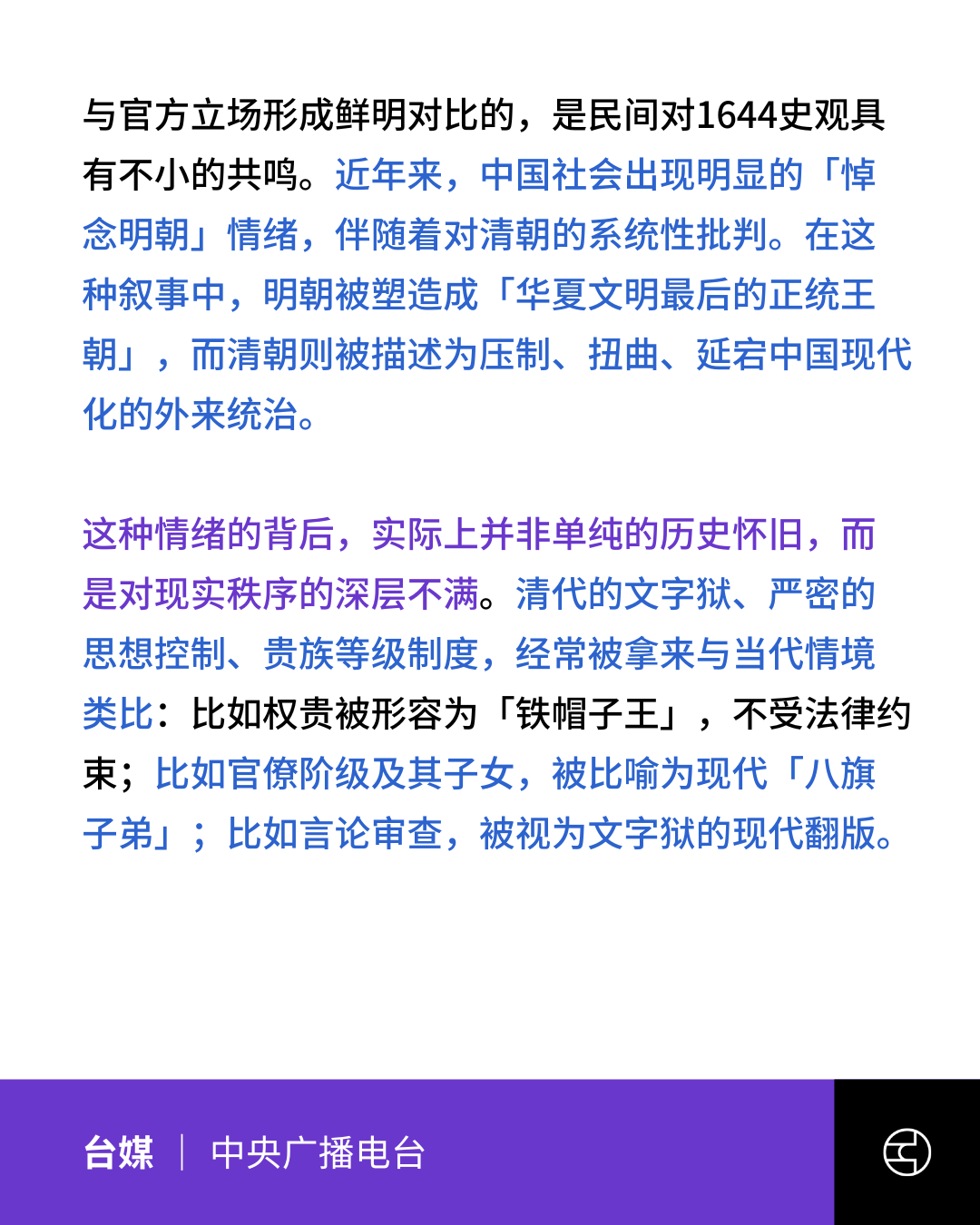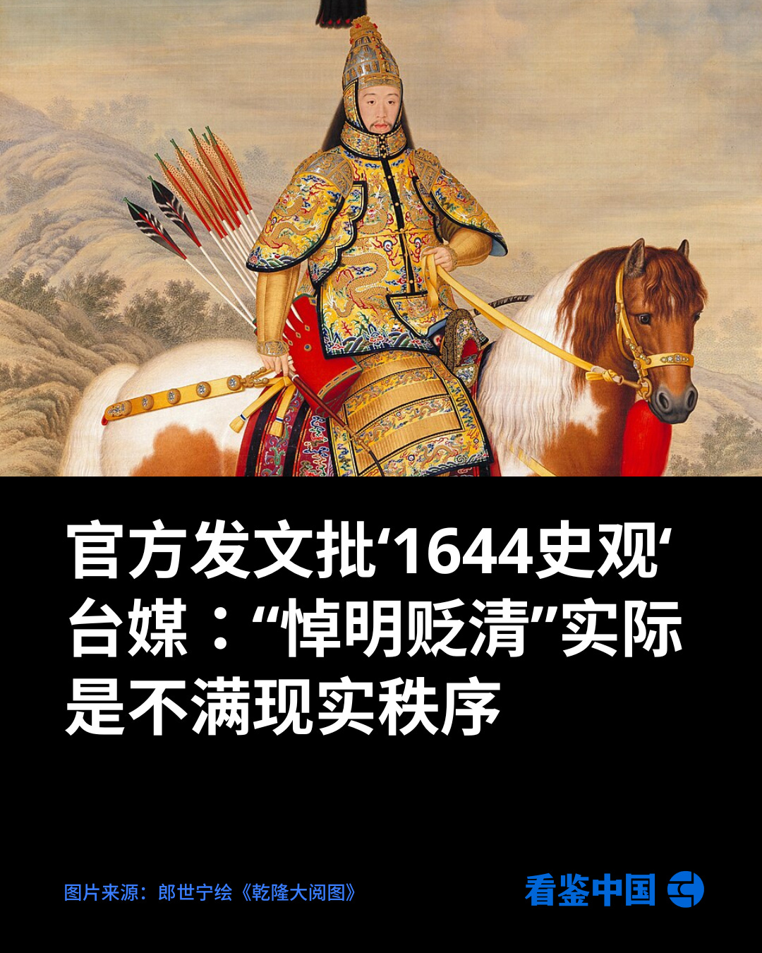 官方发文批“1644史观” 台媒:“悼明贬清”实际是不满现实秩序