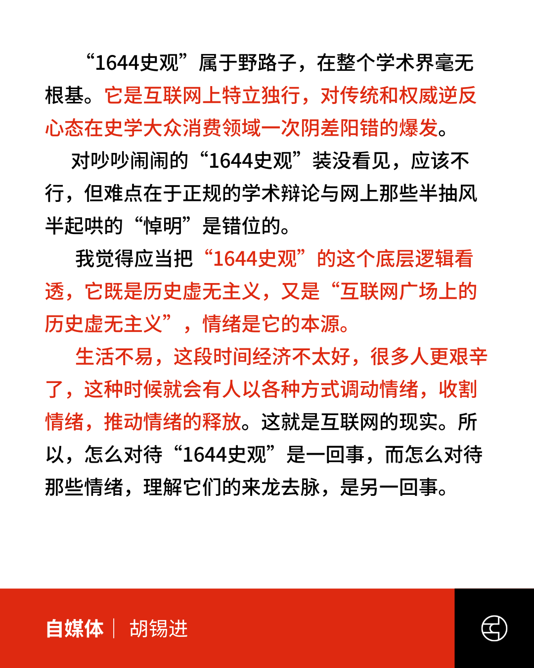 《胡锡进微博》“1644史观”属于野路子....