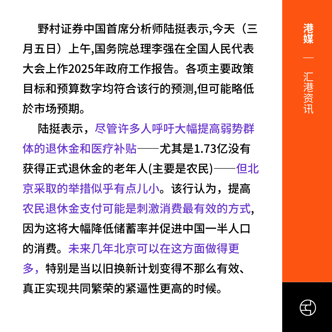 有自媒体评论认为,改革养老金的关键在于对体制内退休人员的财政补贴进行调整,财政补贴有“倒挂”现象,财政对于体制内人员的补贴,分别是企业职工的5倍和城乡居民的17倍。野村证券首席分析师认为,提高农民退休金是刺激消费可能是最具有效的方式,目前北京在退休金和医疗补贴的投入仍然有些不足。