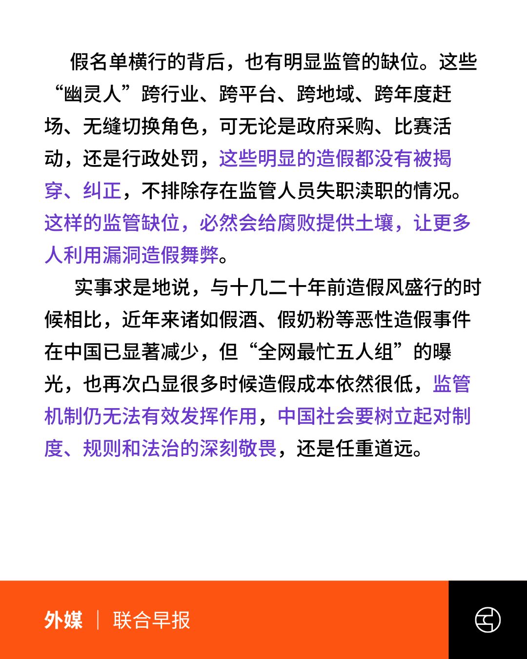 联合早报评论则指出,“最忙五人组”折射的形式主义与监管的缺位,凸显出中国要真正建立对制度和法治的敬畏仍任重道远。