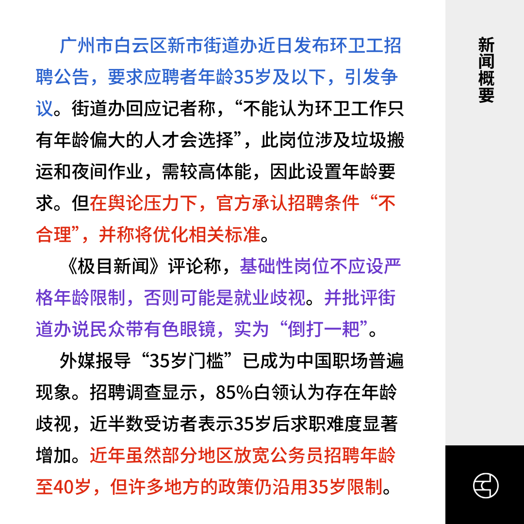 广州招聘设“35岁门槛”引争议,官方承认不合理