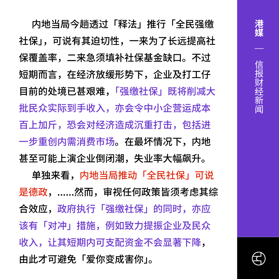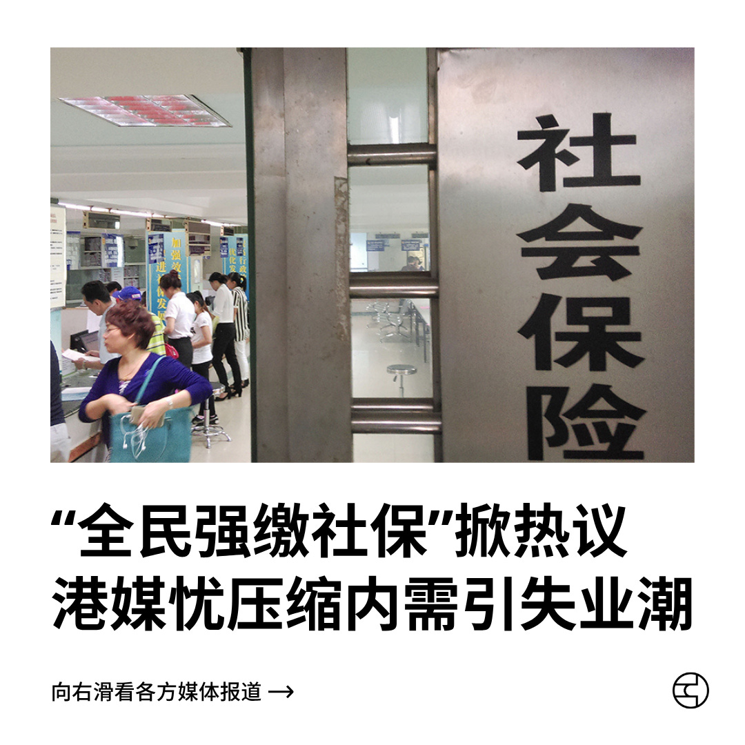 “全民强缴社保”掀热议 港媒忧压缩内需引失业潮