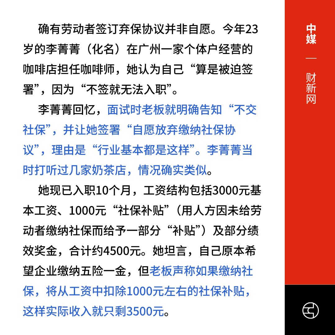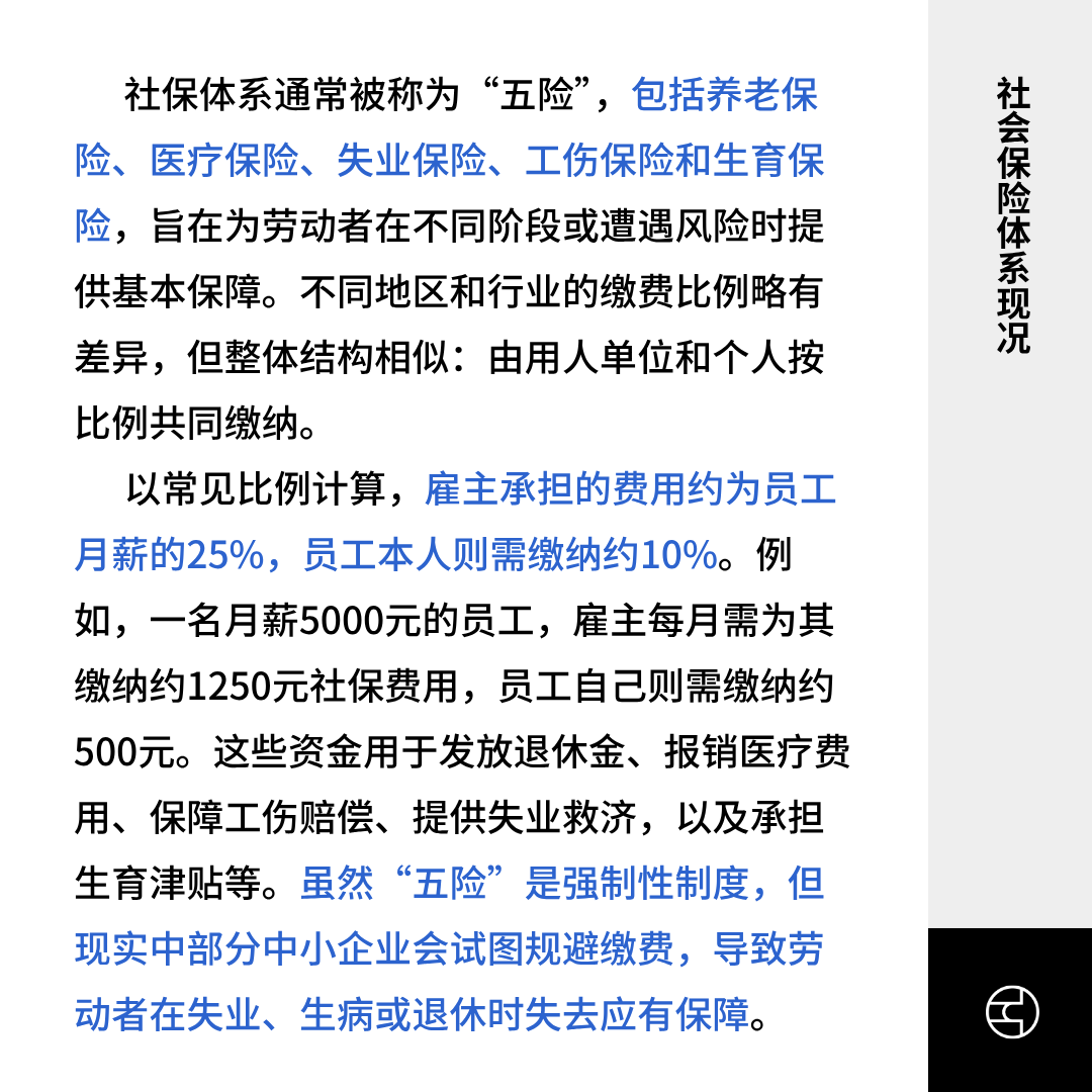 有港媒分析,短期将削减劳动者实得收入并增加中小企业成本,可能压缩内需甚至引发失业潮。中国人民大劳动关系系主任学张皓指出,大量“自愿弃保”源于社保制度不灵活、负担重、对社保基金的信心不足,改革需配套提升收入、优化制度执行。