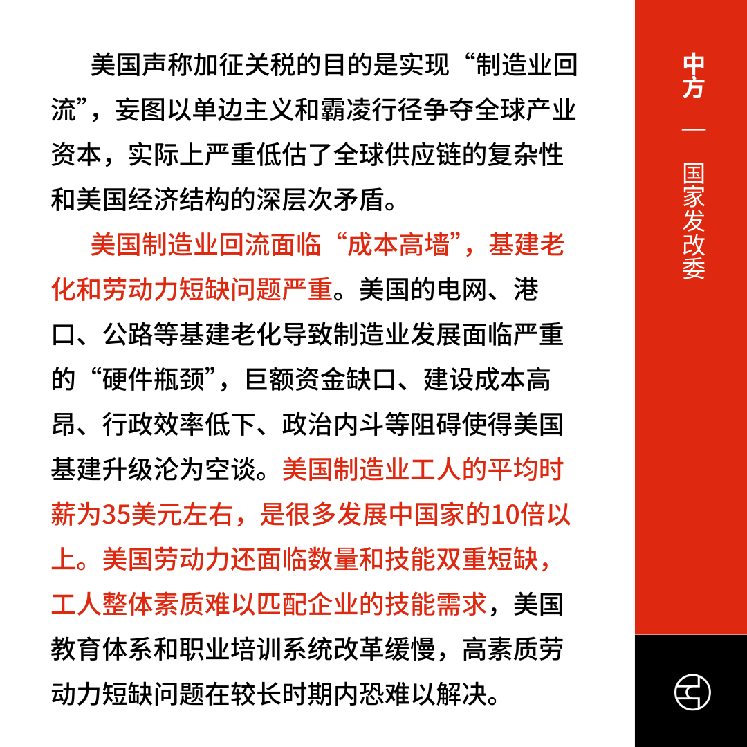 《国家发改委》美国以“对等关税”促制造业回流只能是黄粱一梦