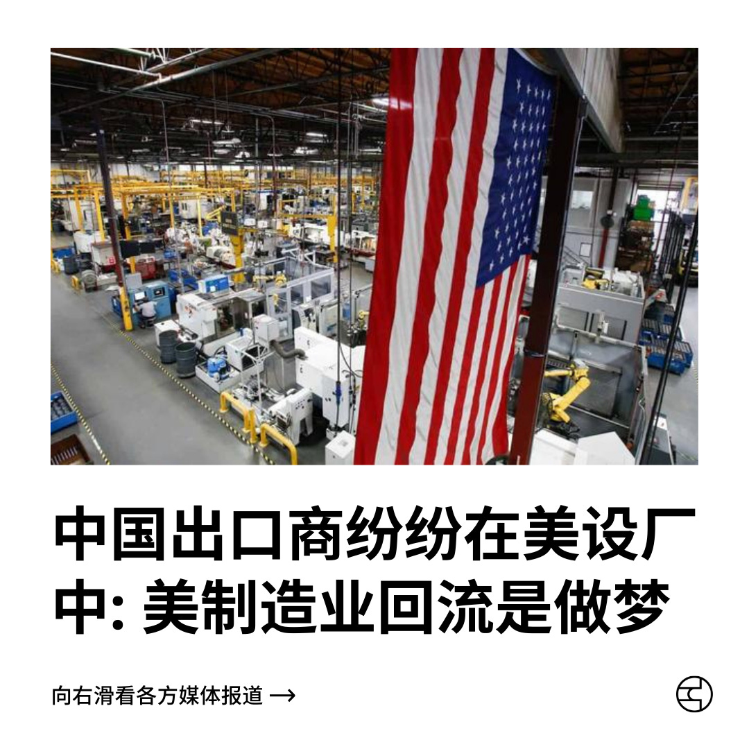 中国出口商纷纷在美设厂,中: 美制造业回流是做梦