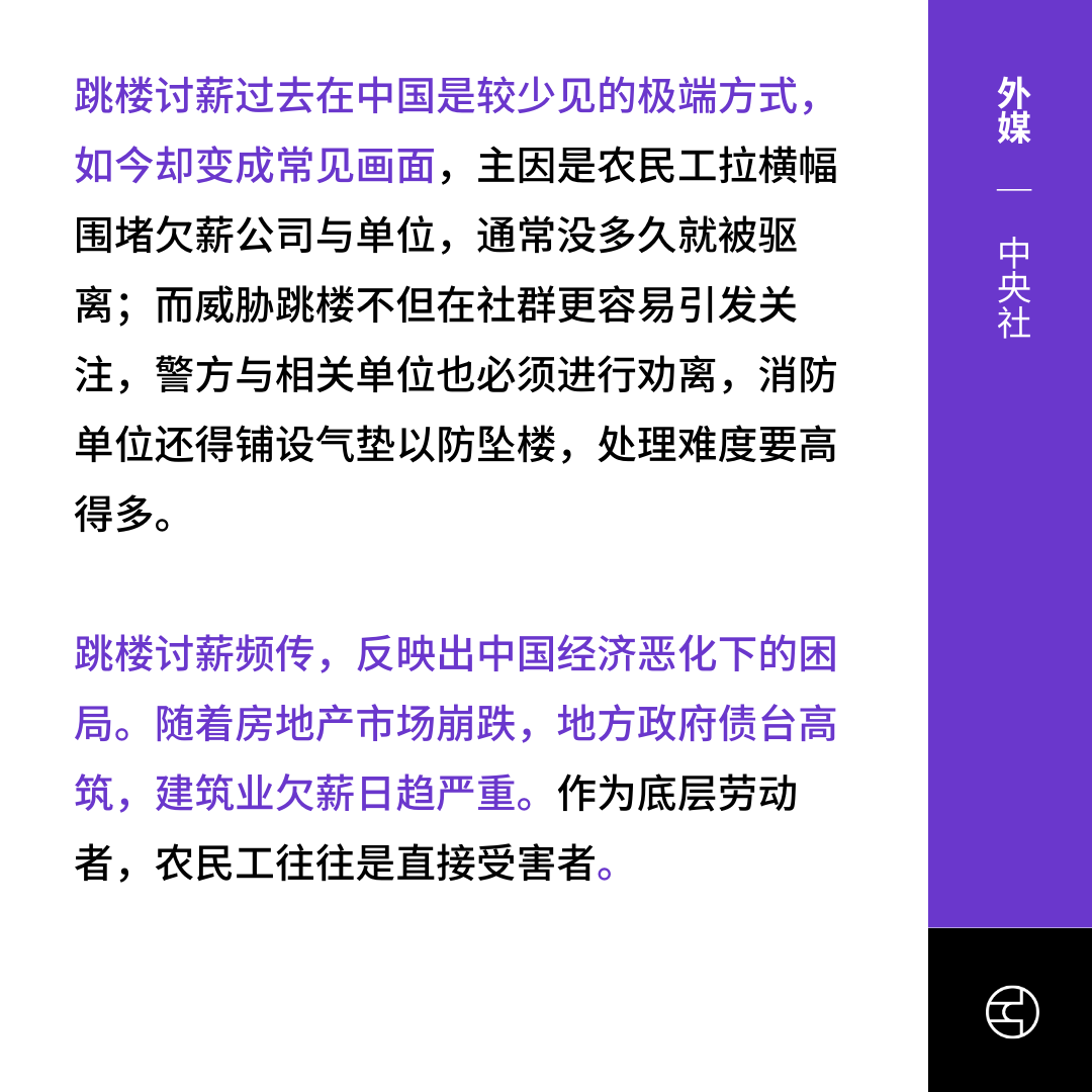 《中央社》年关将至中国频传农民工跳楼讨薪