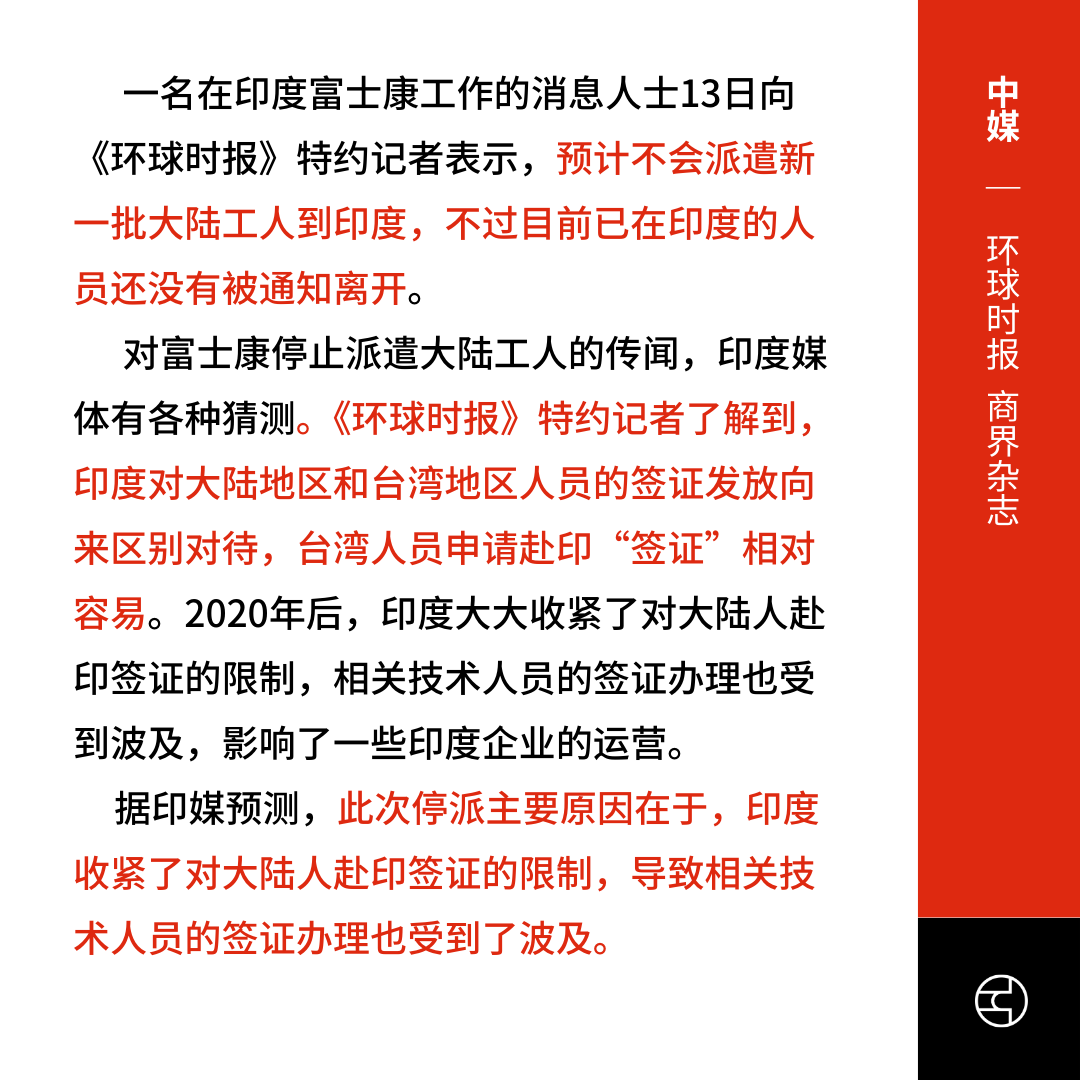 《环球时报》富士康停止派大陆员工?印媒担忧