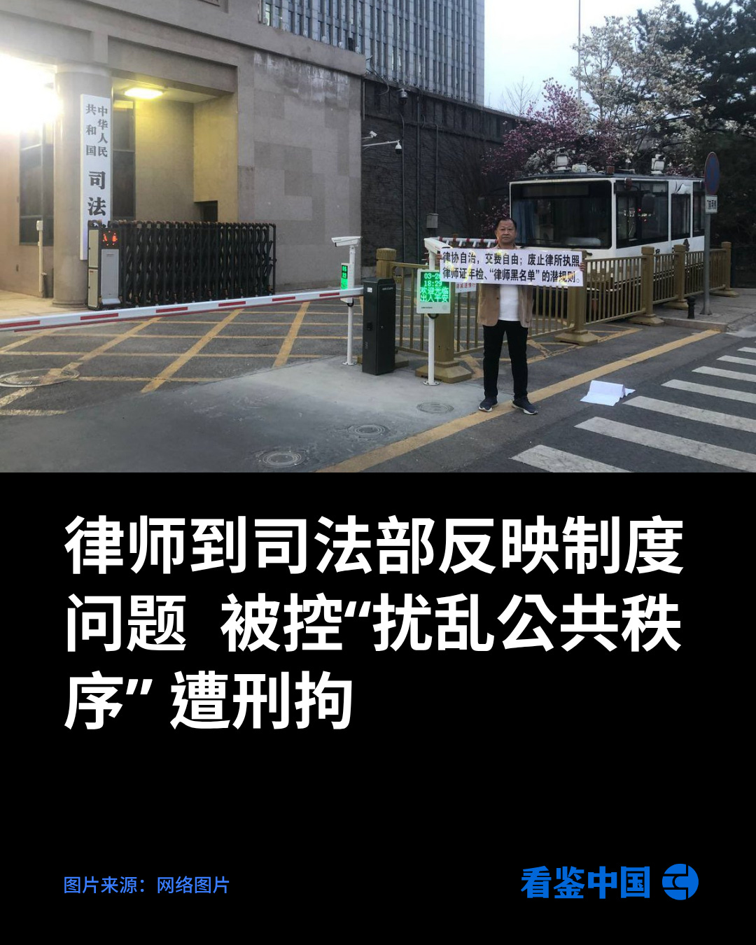 律师到司法部反映制度问题 被控“扰乱公共秩序” 遭刑事拘留