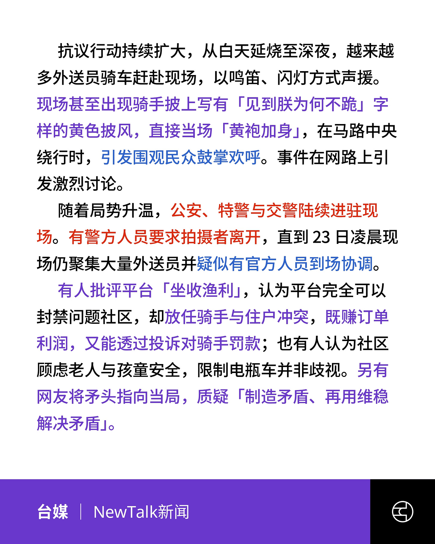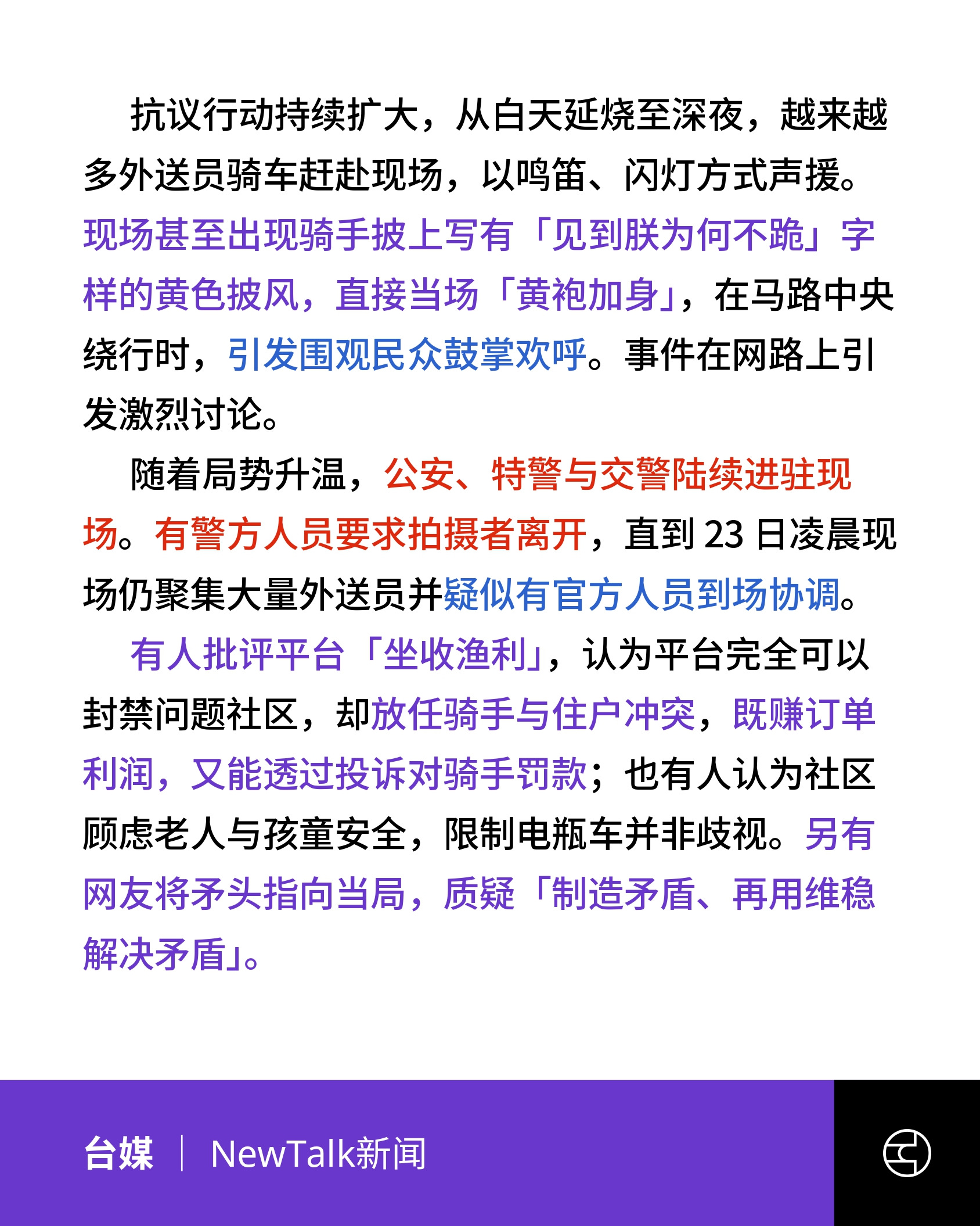 《NewTalk新闻》中国外卖小哥起义了 ! 禁骑令引爆怒火 长沙街头惊见骑手「黄袍加身」