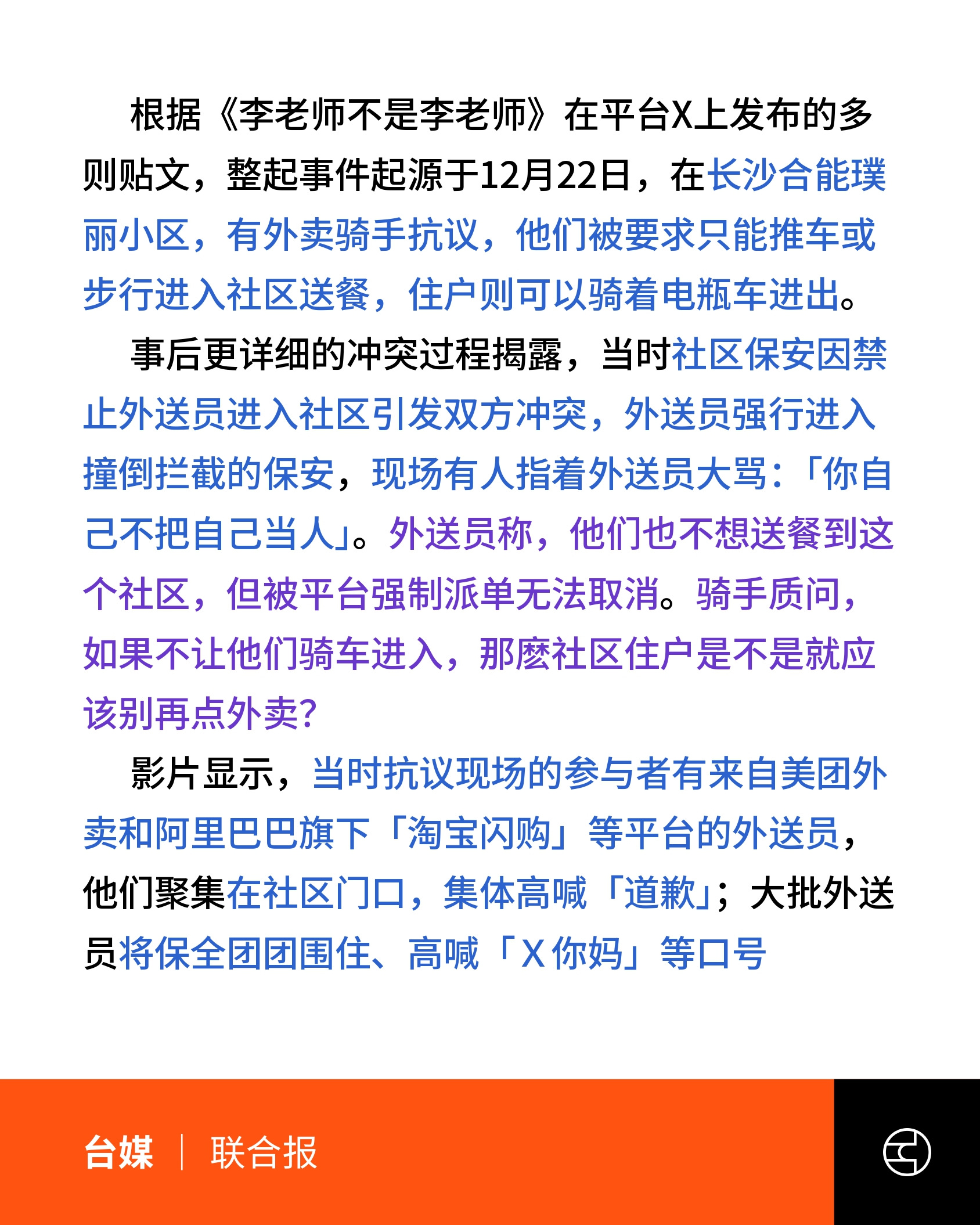 《联合报》长沙爆发外送员大规模抗争 事件延烧至今晨