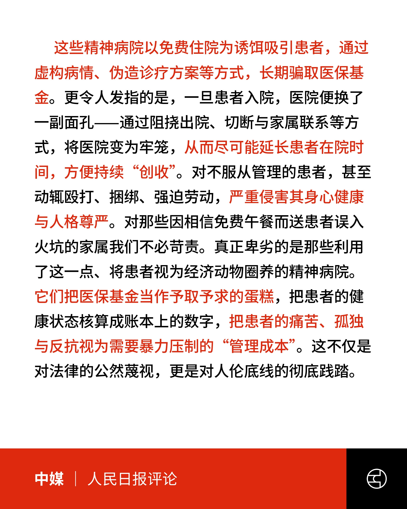 《人民日报评论》如此精神病院“黑箱”,发现一起坚决查处一起 | 热立评