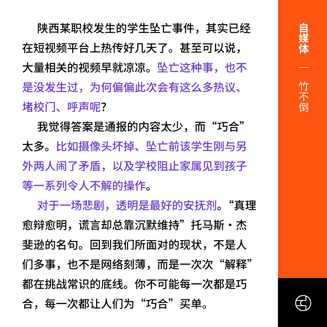 《南方都市报》蒲城学生坠亡事发学校:曾宣讲要敬畏生命,引导同学关怀他人