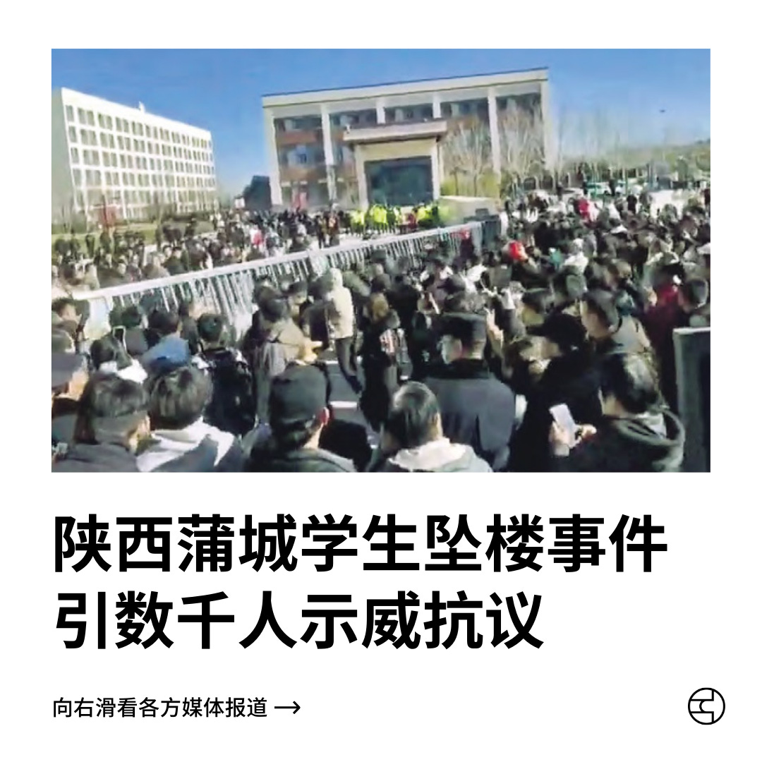 陕西蒲城学生坠楼事件引数千人示威抗议