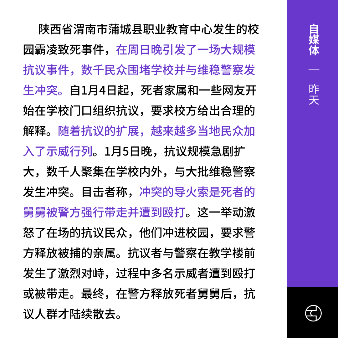 《昨天》陕西蒲城:数千人集会反霸凌要真相与警冲突(2025.01.05)