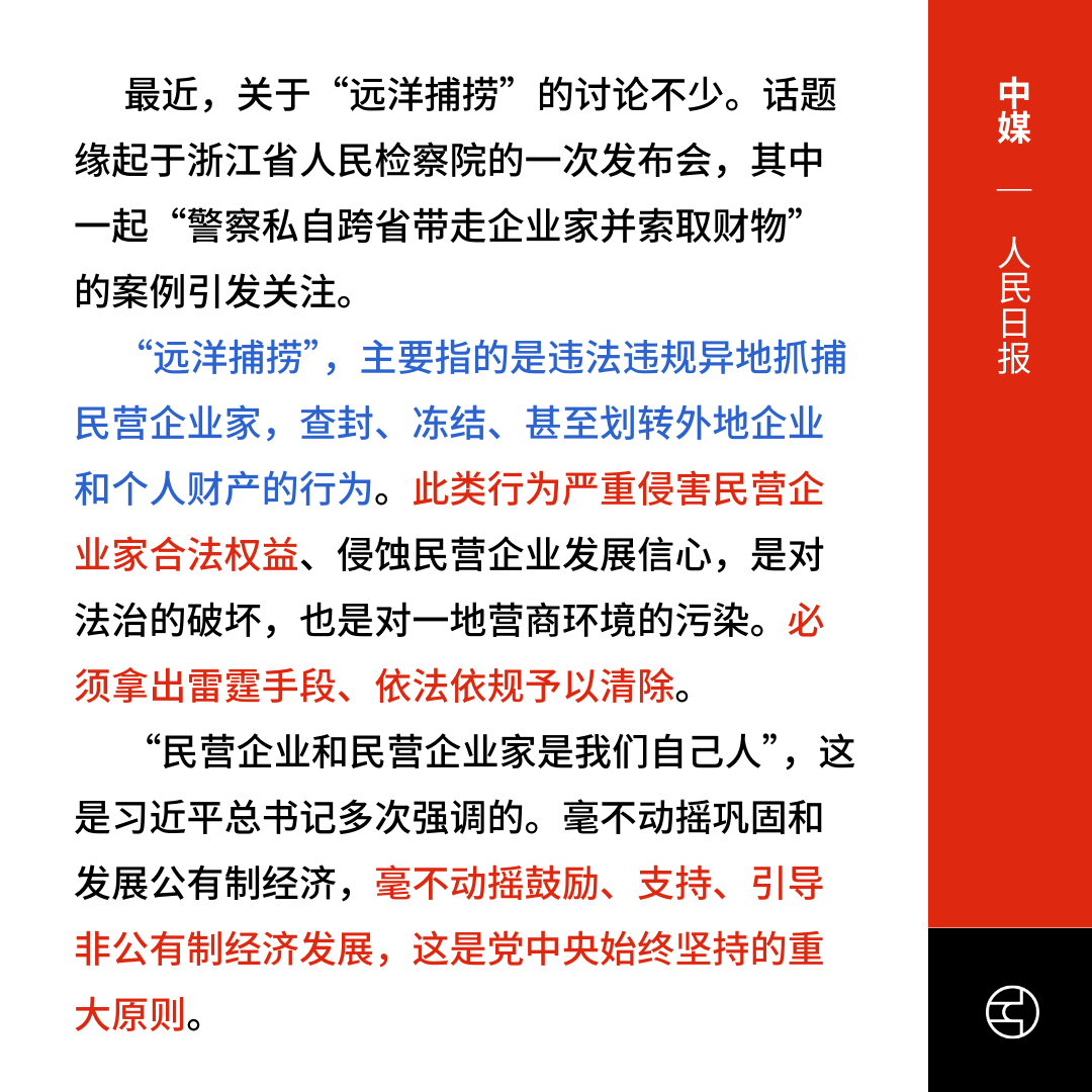 近日,中国各地“远洋捕捞”式执法现象引发广泛关注。“远洋捕捞”指地方执法机构跨区域对民营企业实施违规抓捕、查封和罚没财产,严重损害企业合法权益,扰乱市场秩序。