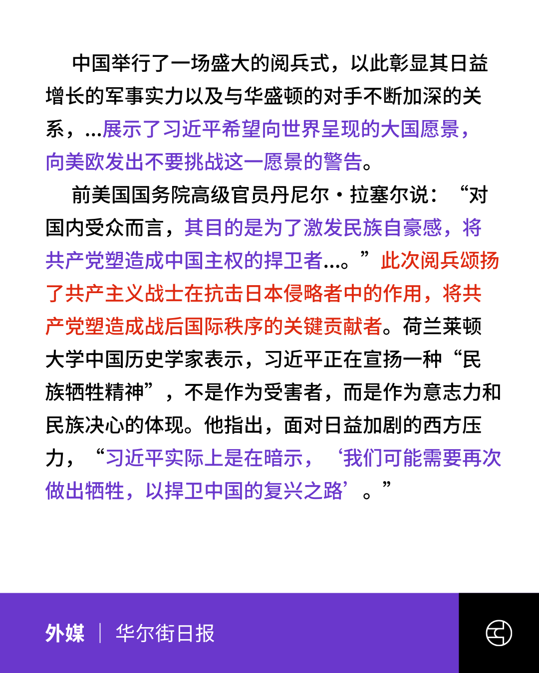 《华尔街日报》中国借盛大阅兵展示军力,并向美国发出警告