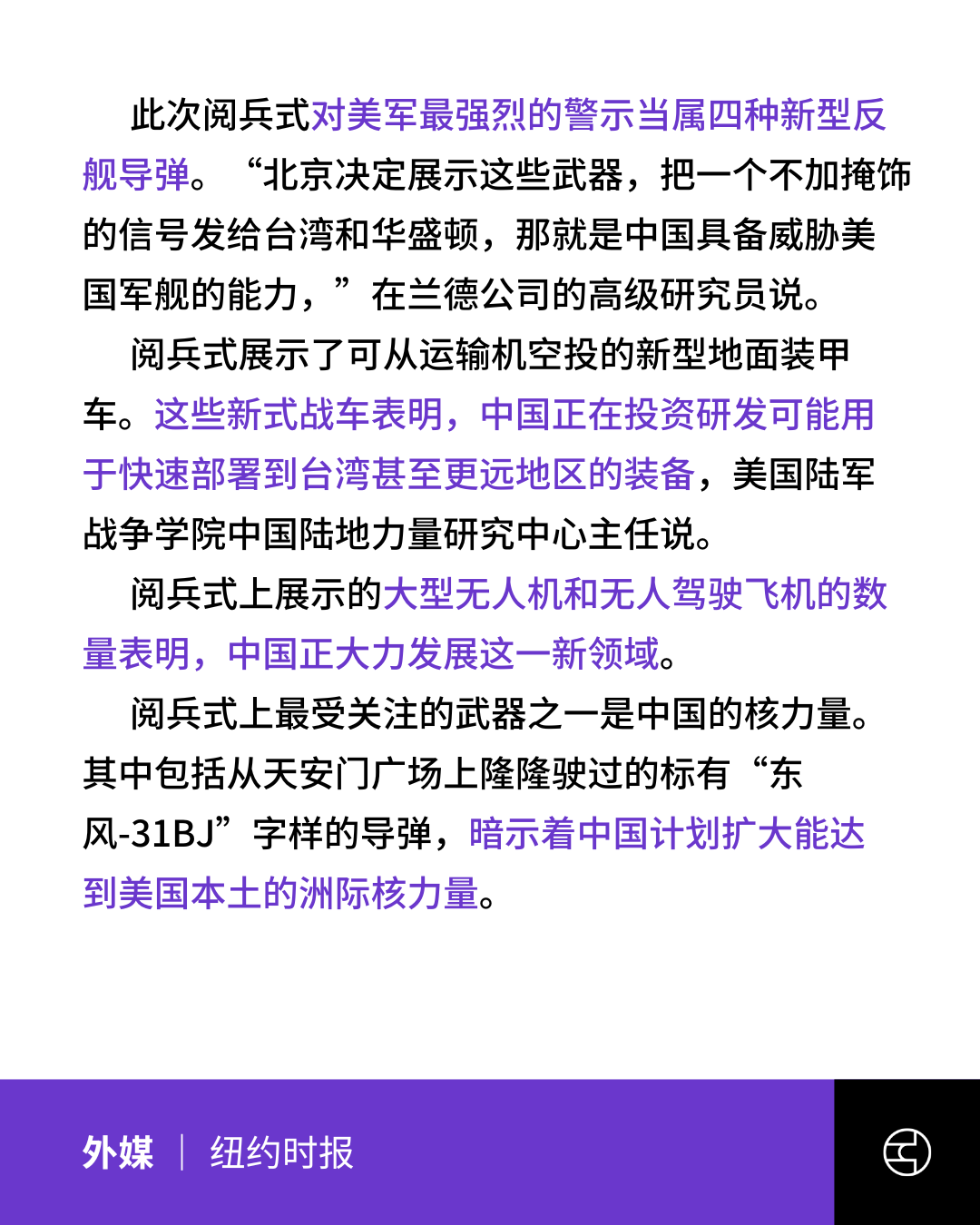 《纽约时报》“九三”阅兵展示了哪些新式武器