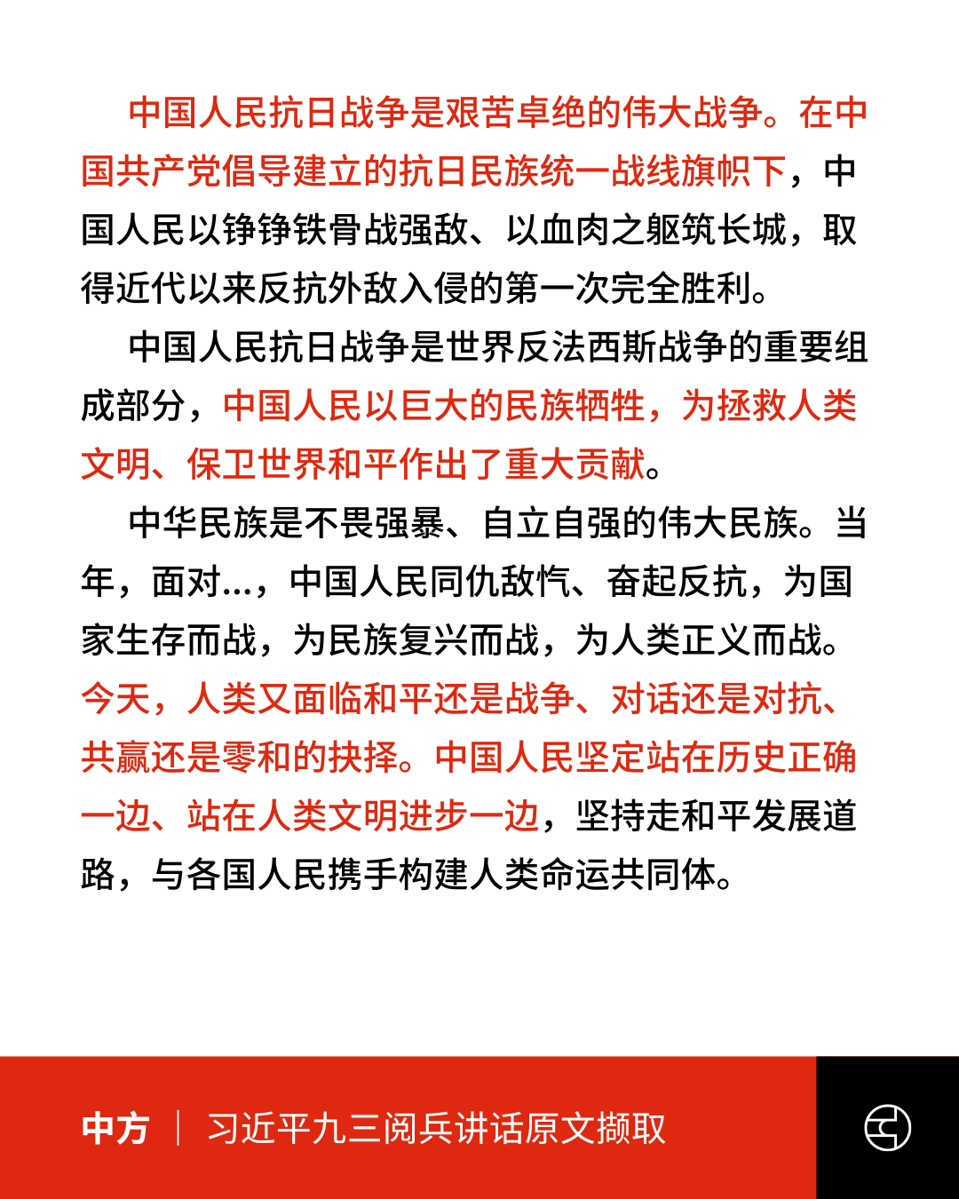 《新华社》习近平:在纪念中国人民抗日战争暨世界反法西斯战争胜利80周年大会上的讲话