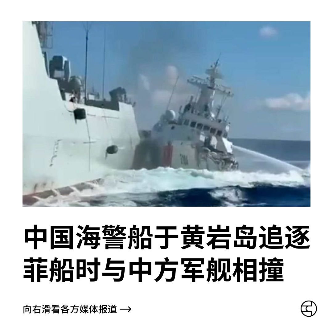 中国海警船于黄岩岛追逐菲船时与中方军舰相撞