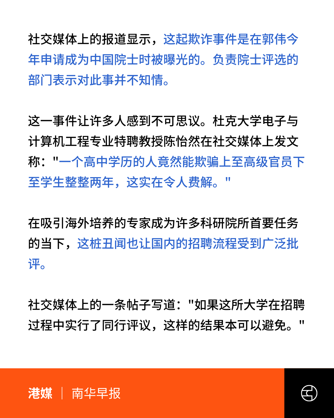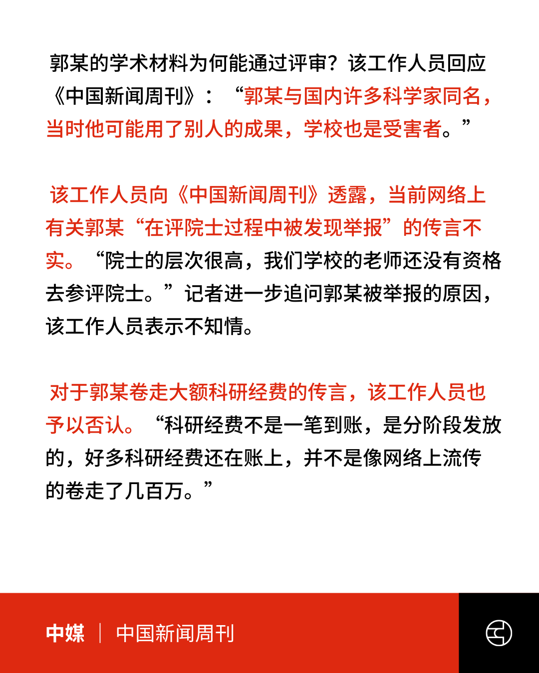 对于郭伟如何能通过评审,江科大工作人员表示:「郭伟与许多科学家同名,可能用了别人的成果,学校也是受害者」。