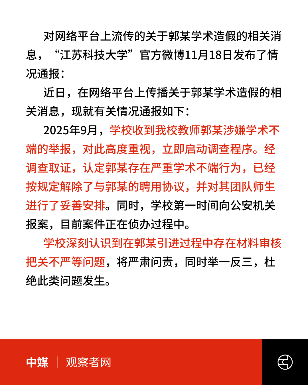 《观察者网》“首席科学家”郭某学历实为高中?江苏科技大学通报