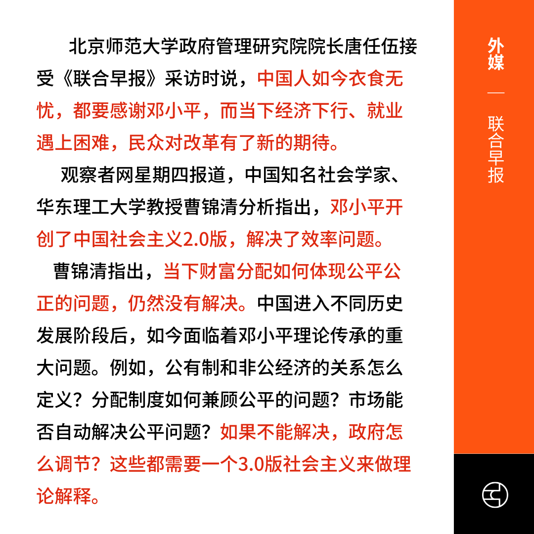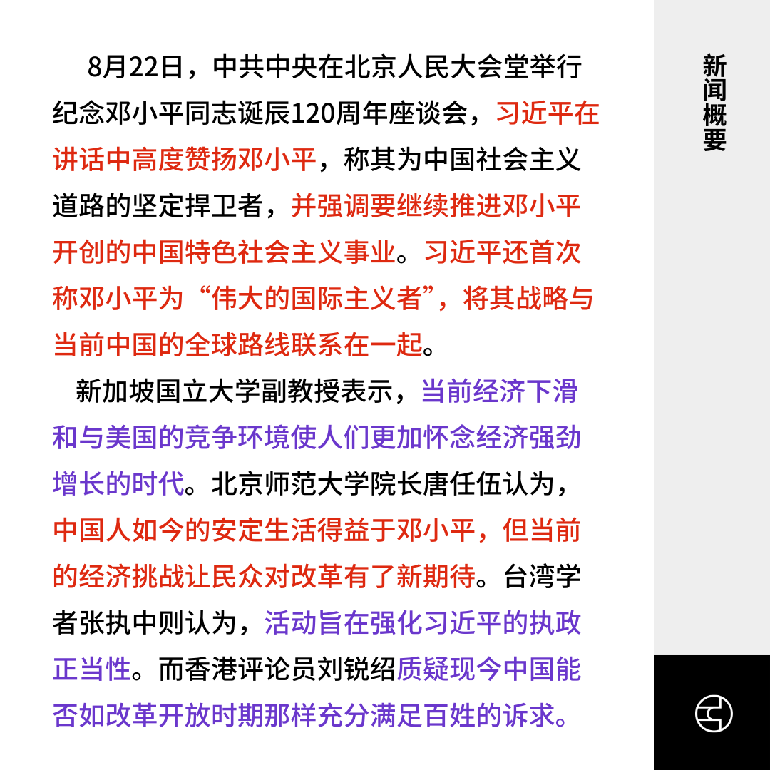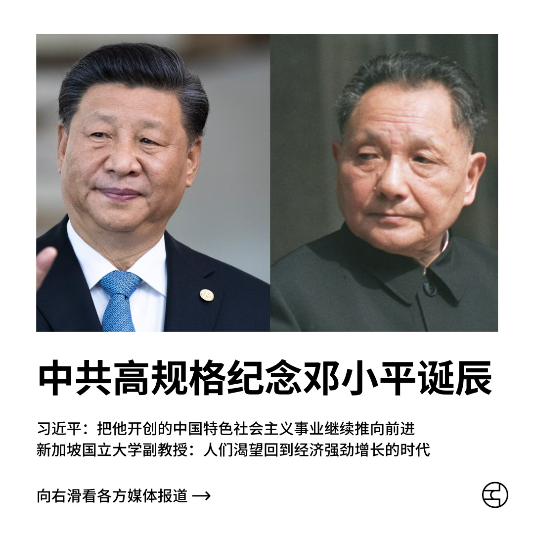 《联合早报》中共高规格纪念邓小平 习近平:该改的坚定不移改 不该改的不改