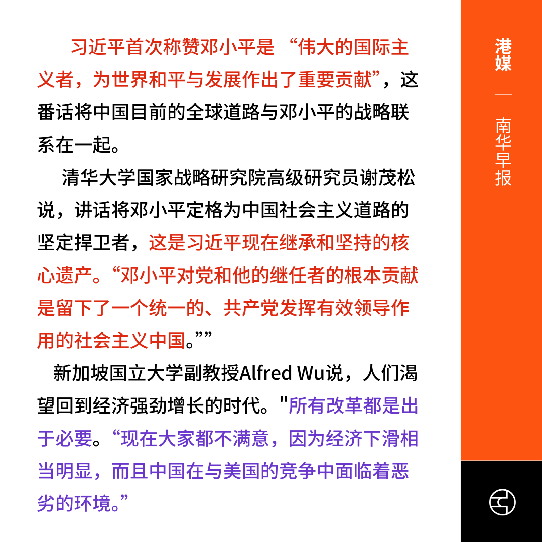 《南华早报》习近平呼吁全国人民实现中华民族伟大复兴,向改革家邓小平致敬