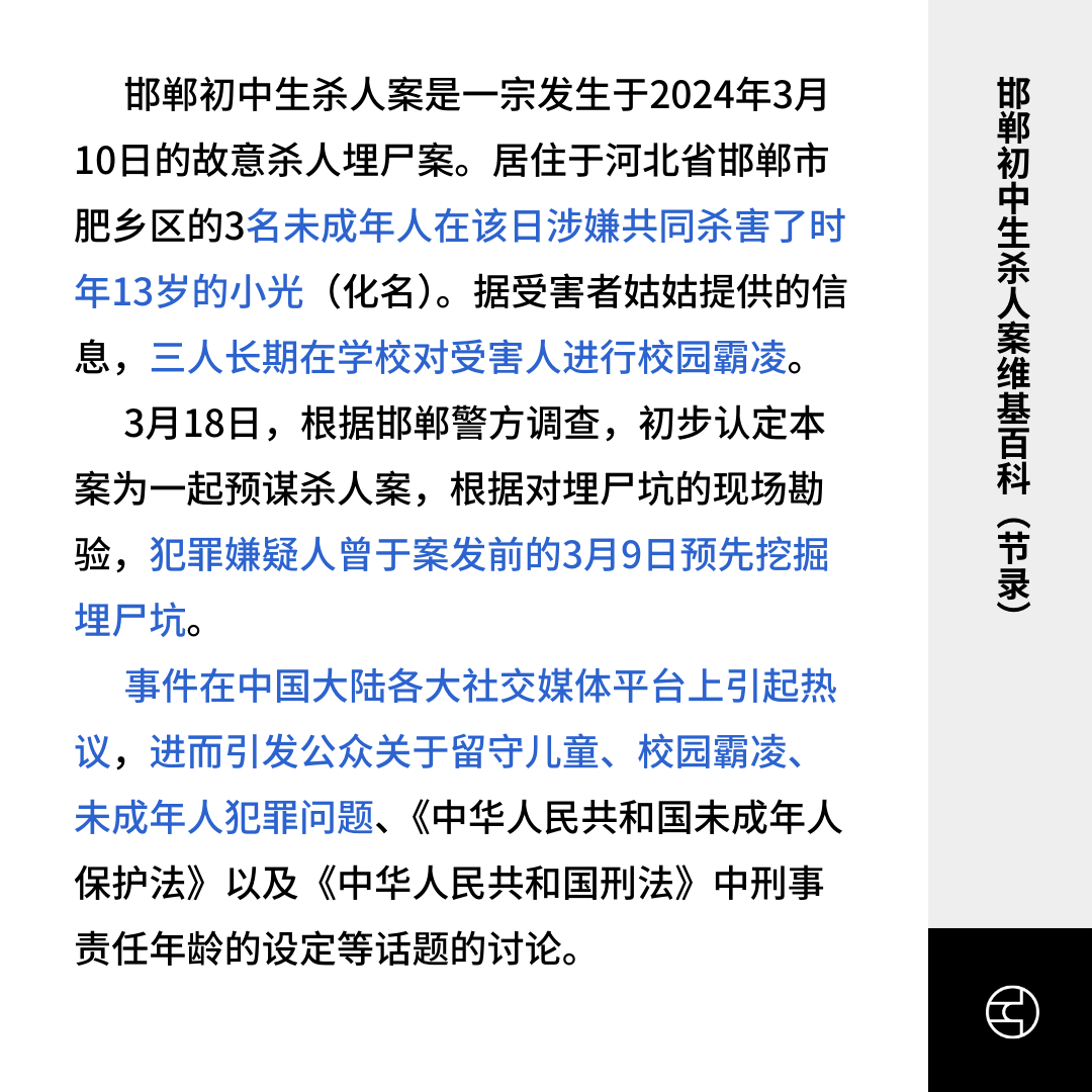 《维基百科》邯郸初中生杀人案