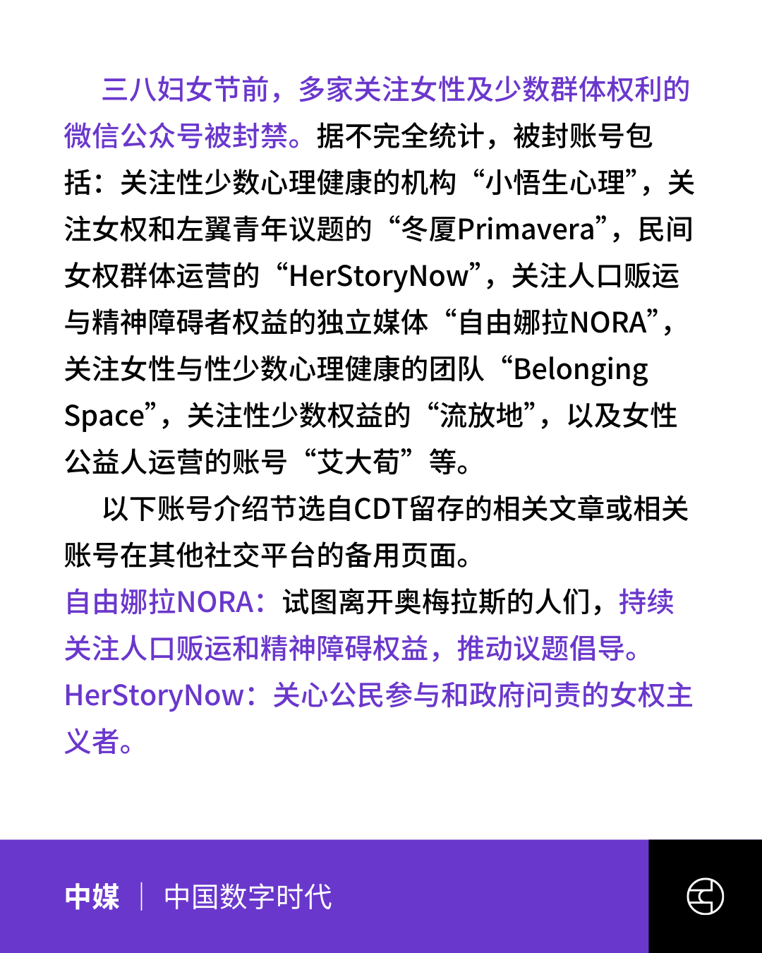 《中国数字时代》【404媒体】三八妇女节前,女权账号被封禁