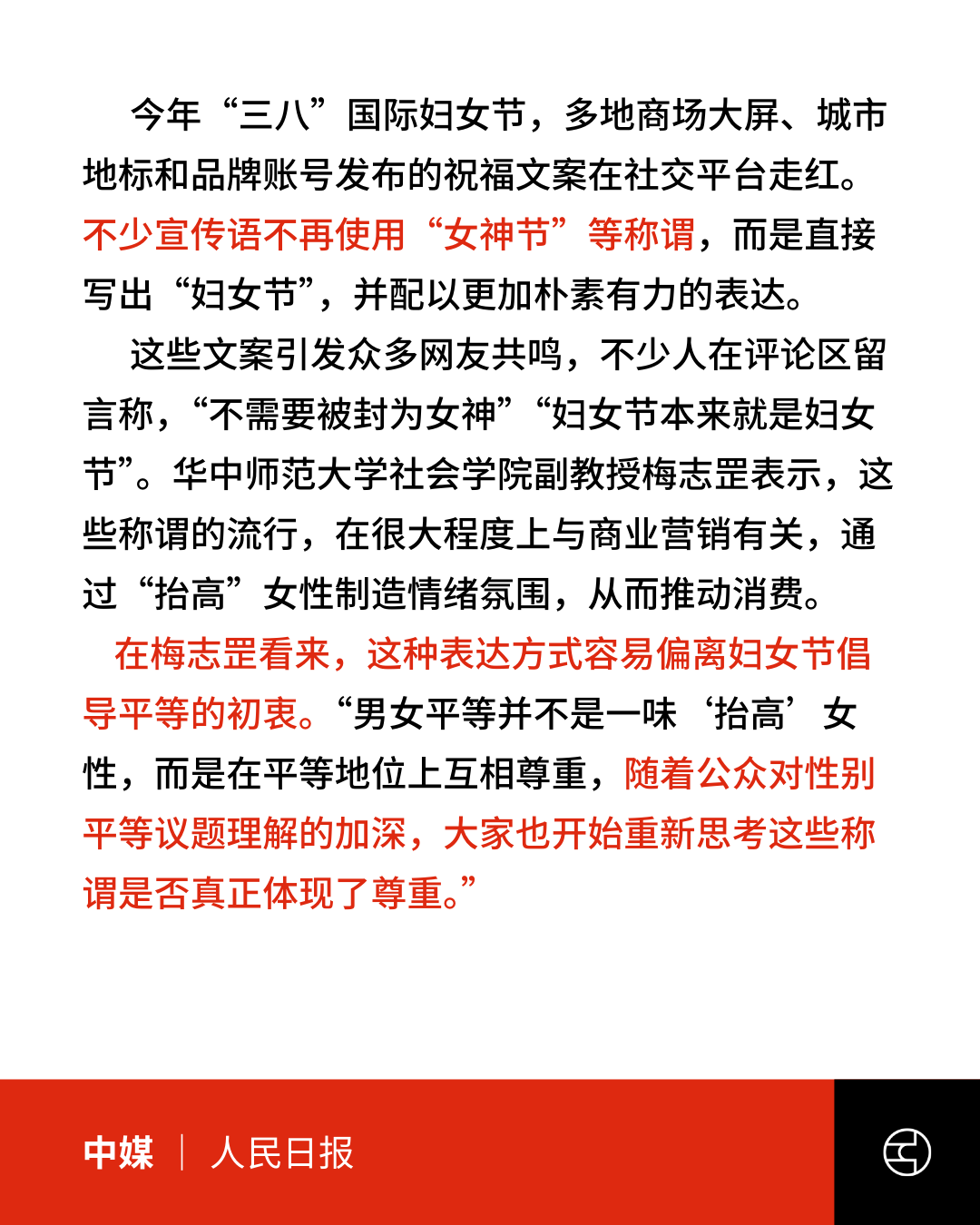 《人民日报》多地宣传语告别“女神节”“女王节”称谓,使用“妇女节”