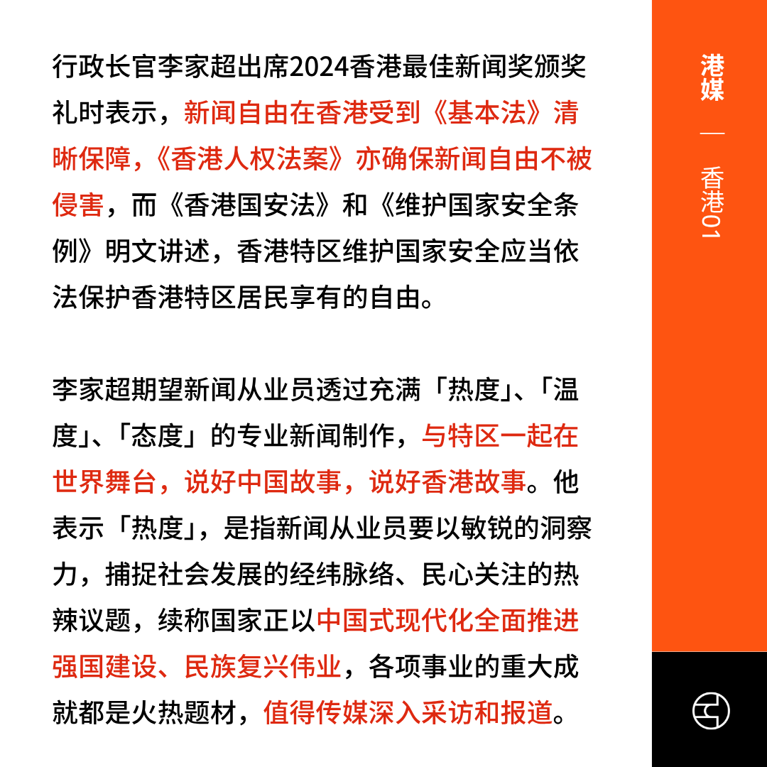对此,特首李家超未正面回应批评,仅强调香港的新闻自由受《基本法》保障,呼吁传媒“说好中国及香港故事”。