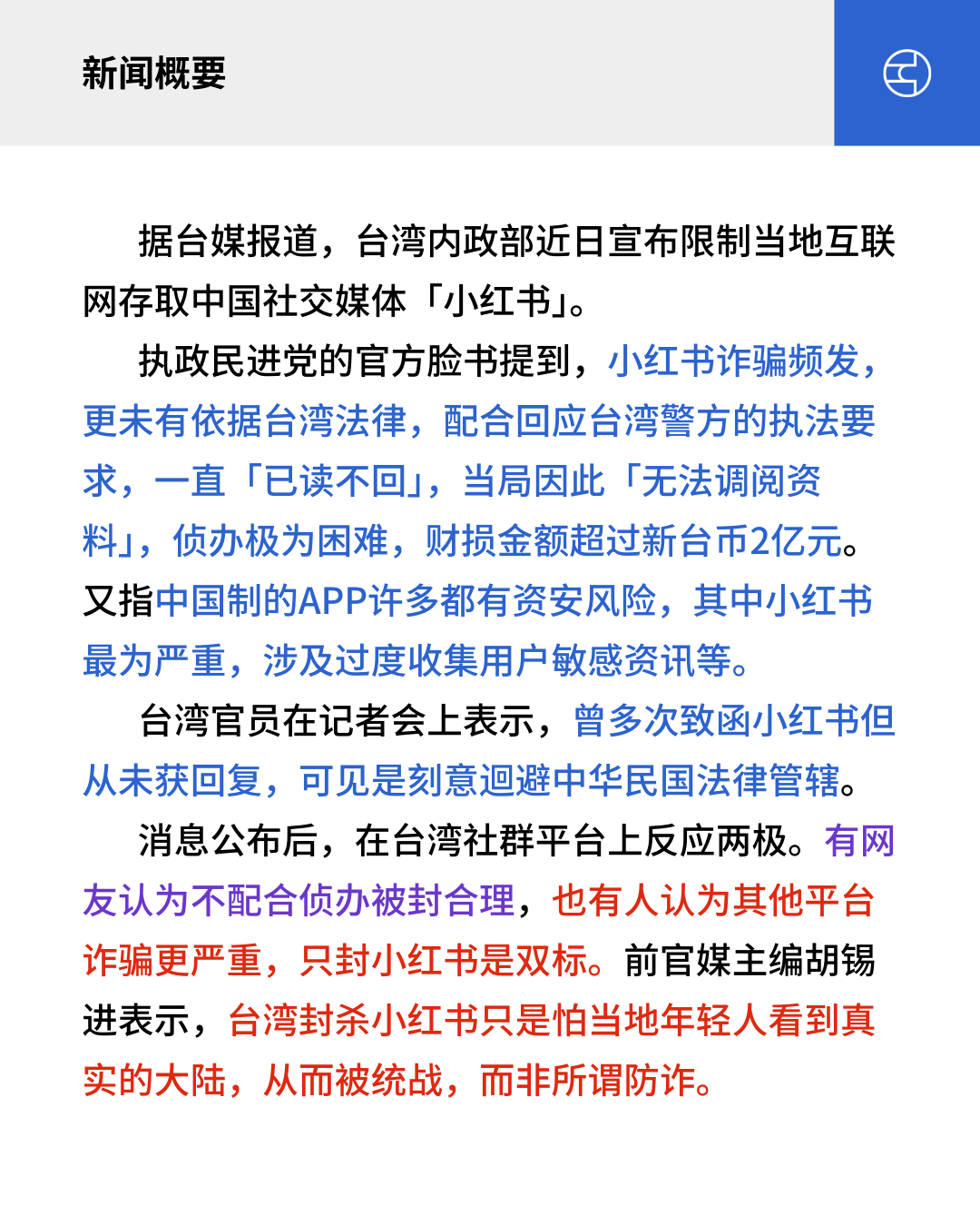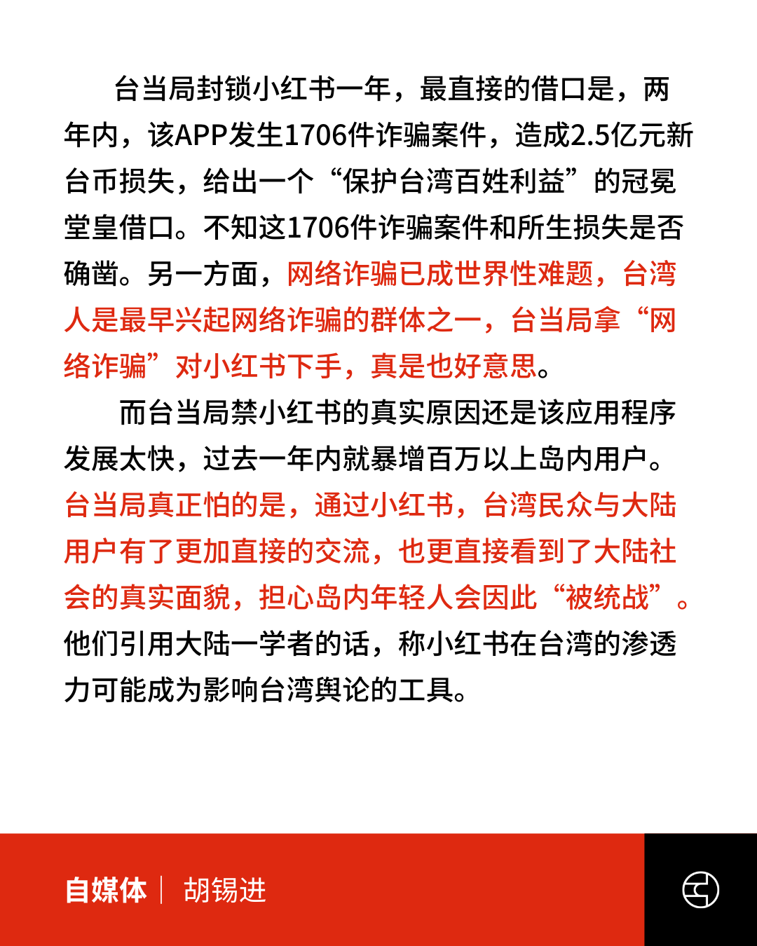 小红书在台湾被封 台官员:平台诈骗频发,且拒不配合执法