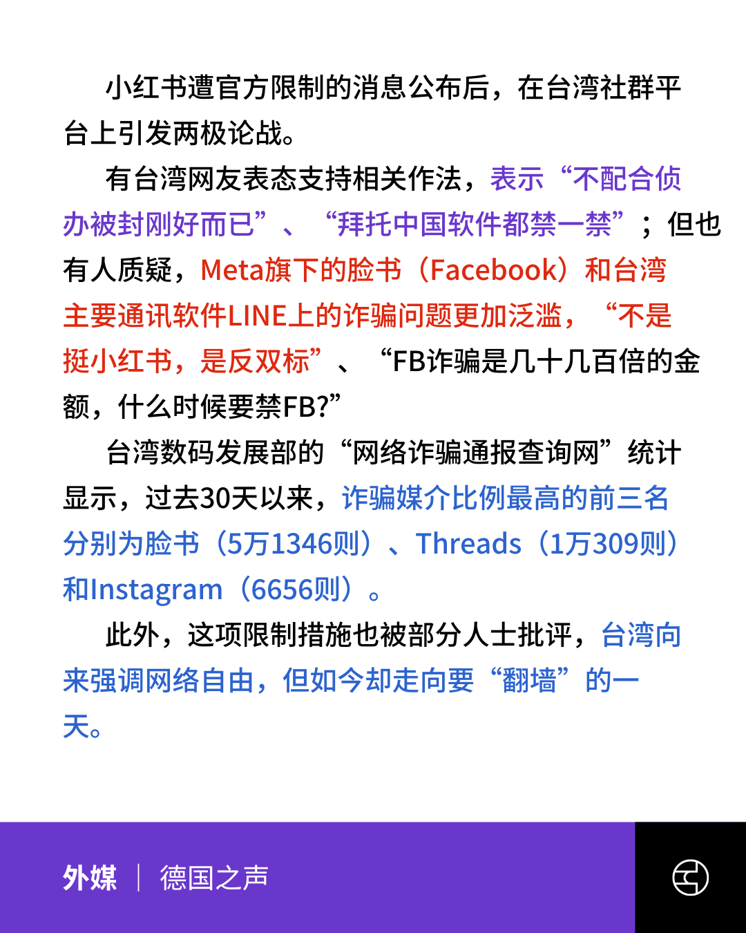 《德国之声》台湾封锁“小红书”一年? 陆委会:非针对两岸