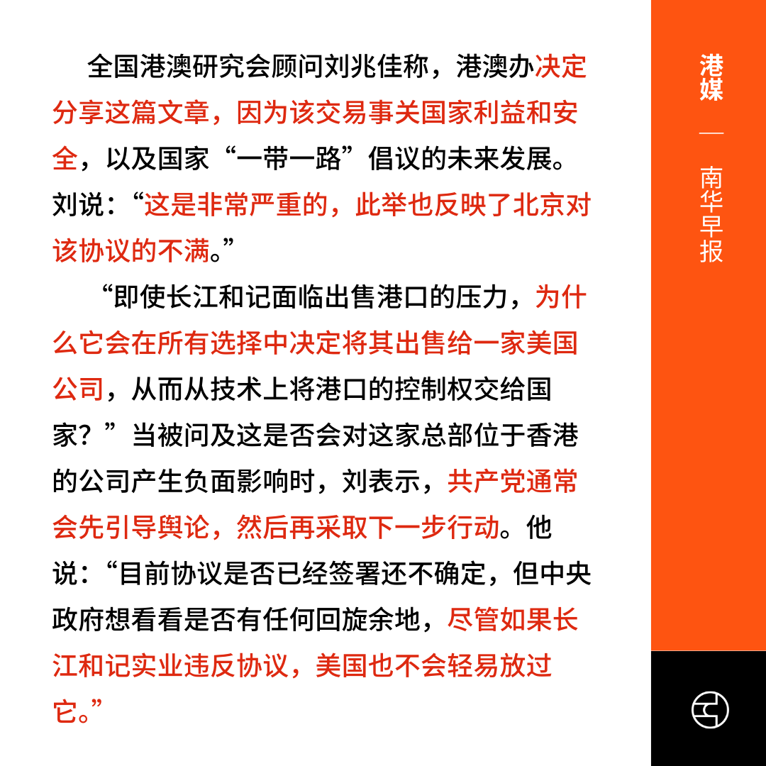 《南华早报》“背叛”:北京驻香港办事处严厉批评和记黄埔的巴拿马交易 ‘A betrayal’: Beijing office on Hong Kong runs scathing attack on Hutchison’s Panama deal