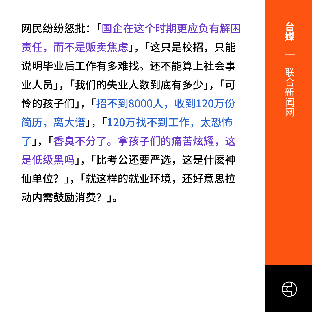 《联合新闻网》中核炫耀收到120萬份應聘簡歷 被轟「在失業痛苦上灑鹽」