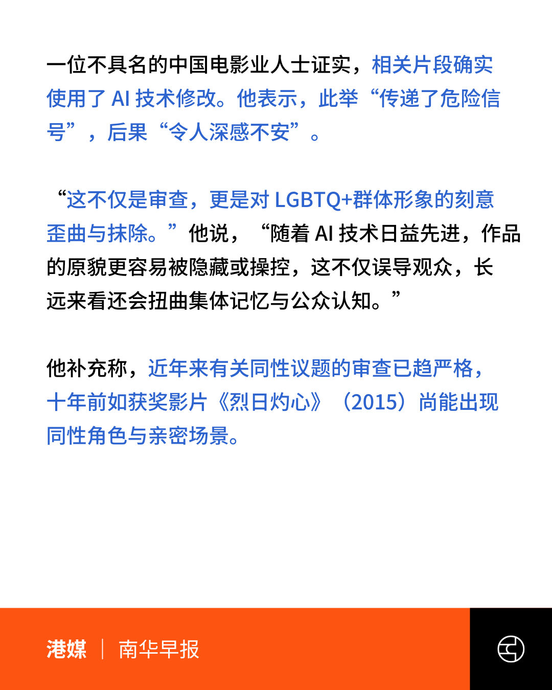 《南华早报》‘AI censorship’ of horror film Together raises new fears for future of Chinese LGBTQ films