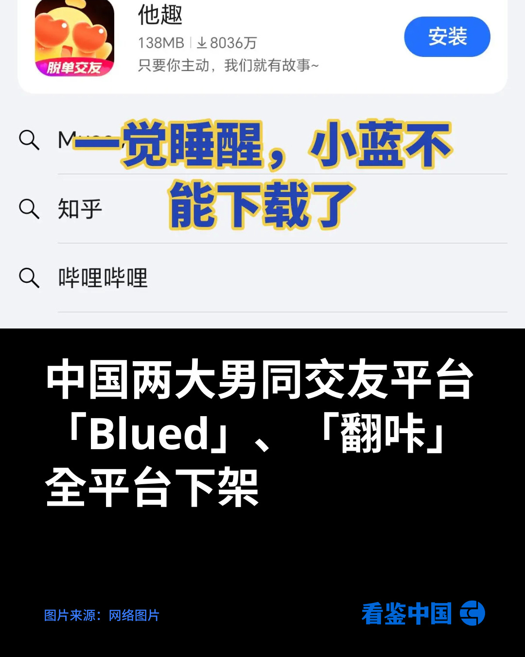 中国两大男同交友平台 「Blued」、「翻咔」全平台下架