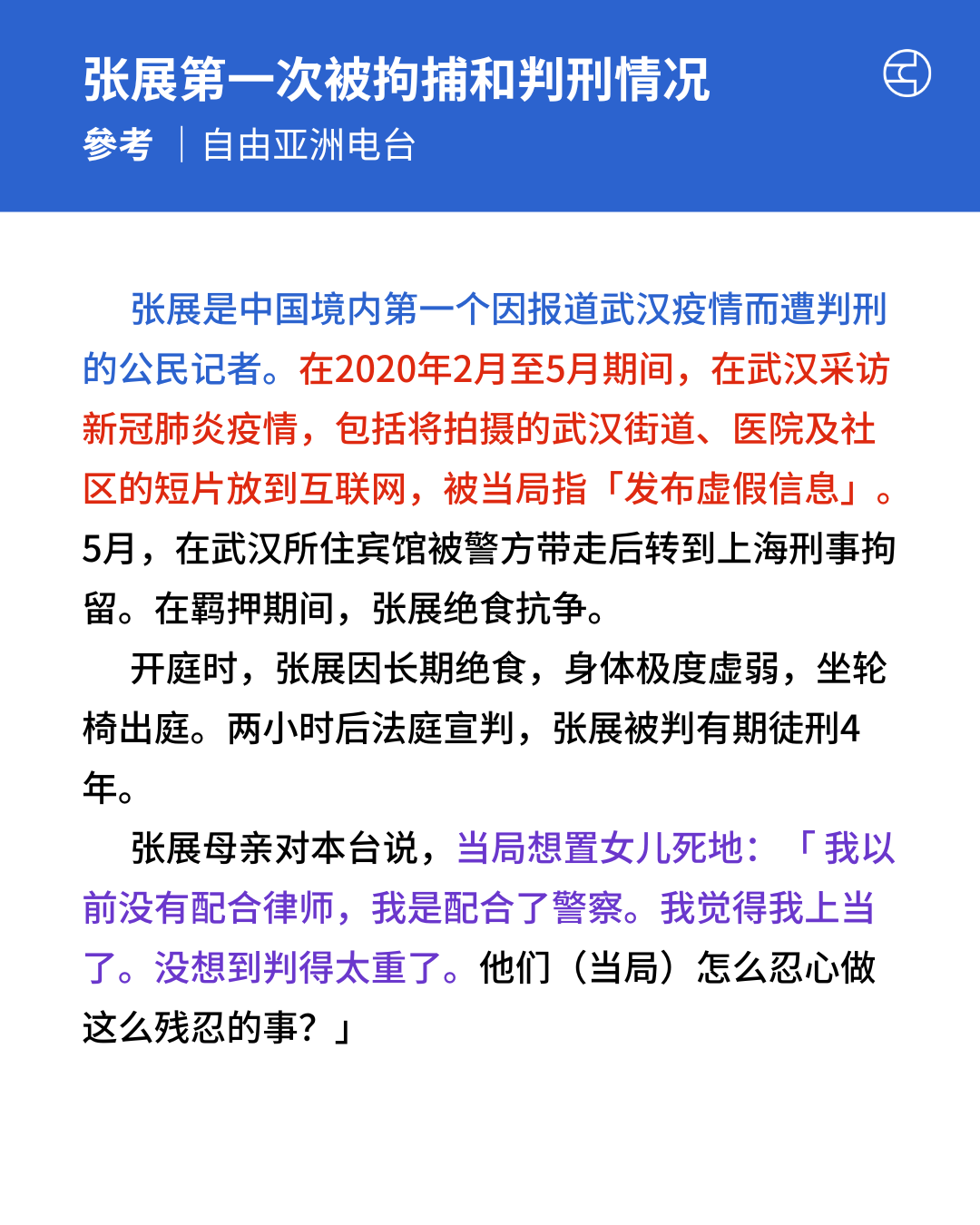《自由亚洲电台》 冒险入武汉报肺炎真相 张展插鼻喉、轮椅出庭 被判4年