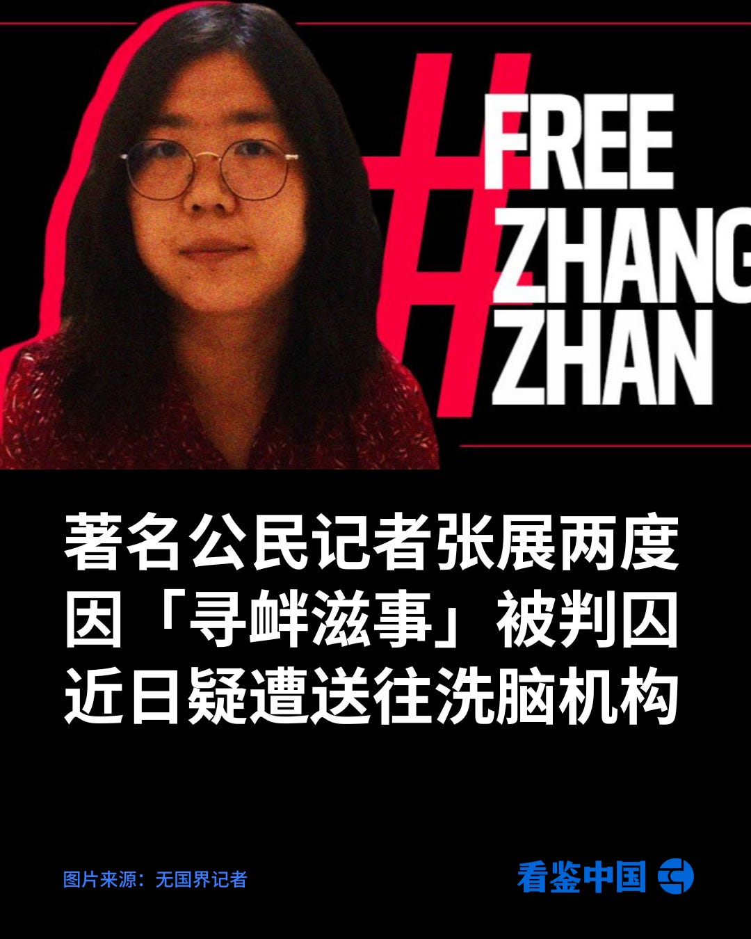 著名公民记者张展两度因「寻衅滋事」被判囚 近日疑遭送往「洗脑」机构
