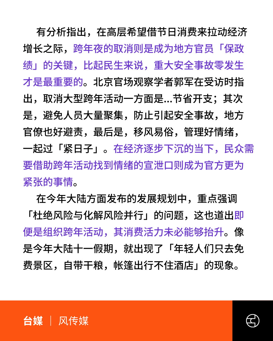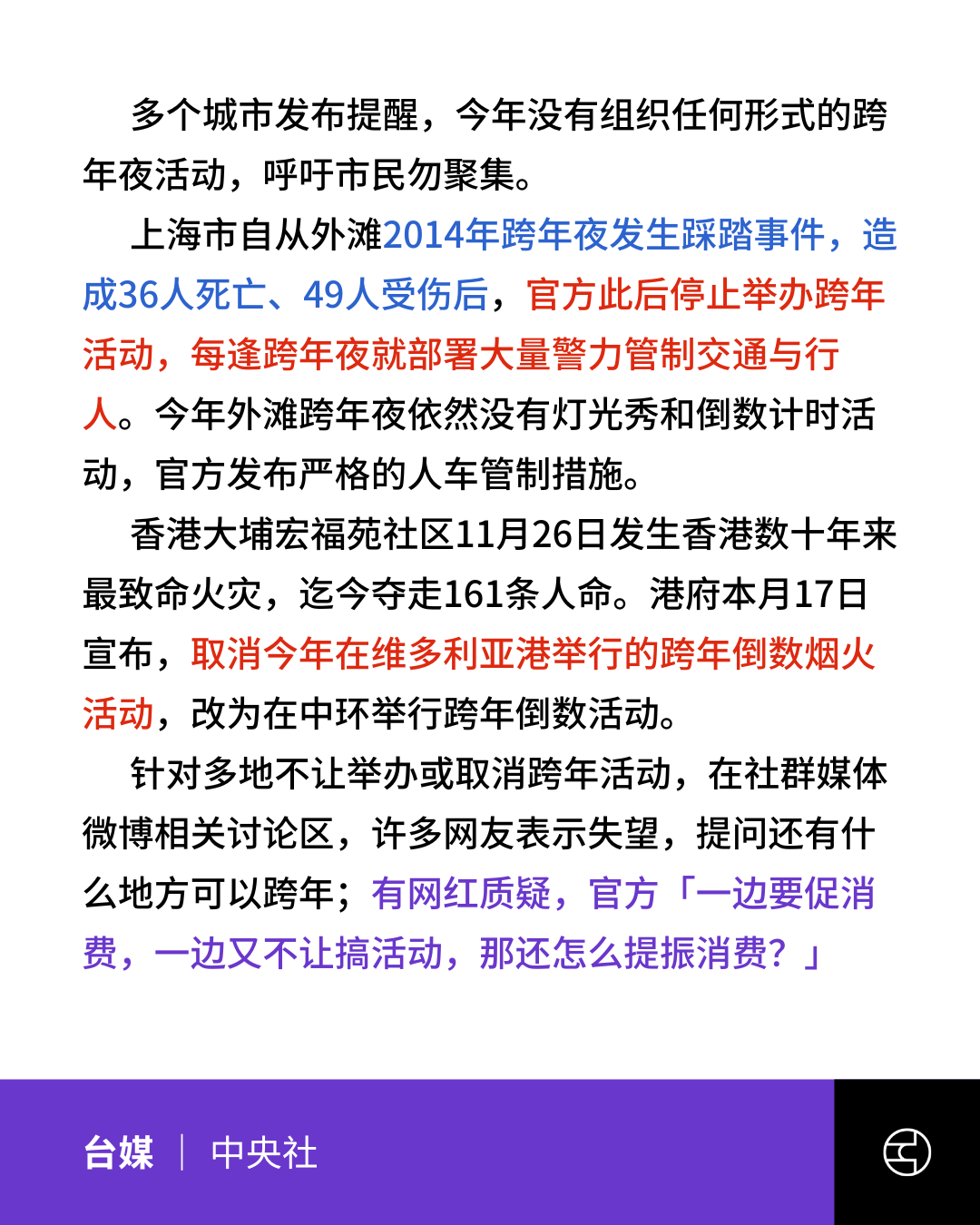 《风传媒》中国人只过春节?大陆多城紧急取消跨年活动,安全优先还是经济下沉警讯?