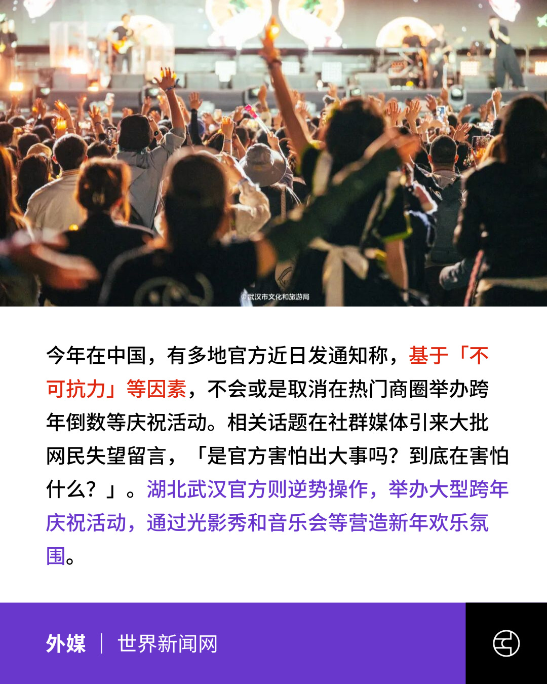 《世界新闻网》怕出大事?中国多地宣布取消跨年活动 但1城市逆势操作