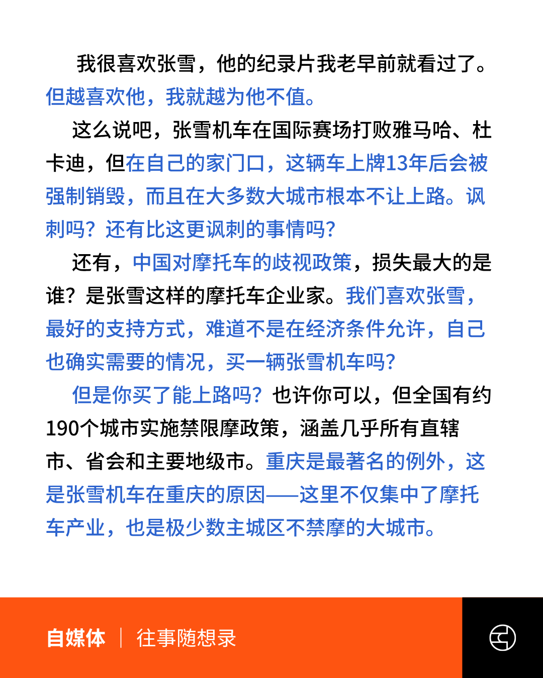 《中国数字时代》往事随想录|张雪很励志,但别忘了中国是全世界最歧视摩托车的国家