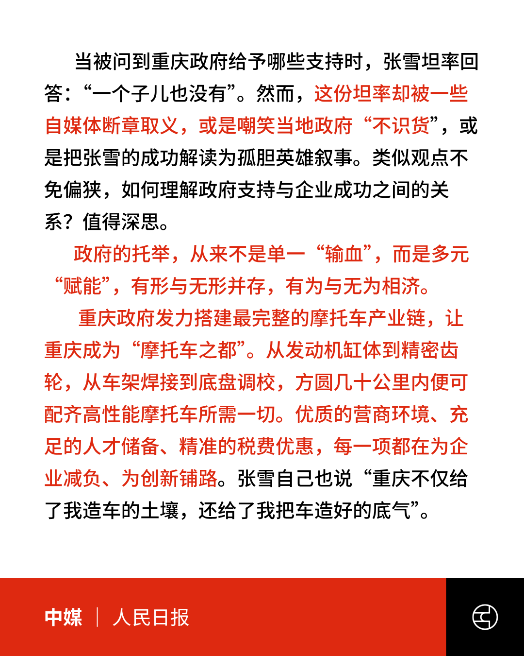 《人民网》人民锐评:张雪“一个子儿也没有”引误读,政府托举是多元赋能