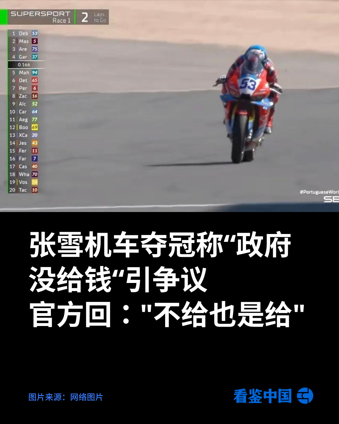 张雪机车夺冠称“政府没给钱“引争议 官方回:"不给也是给"
