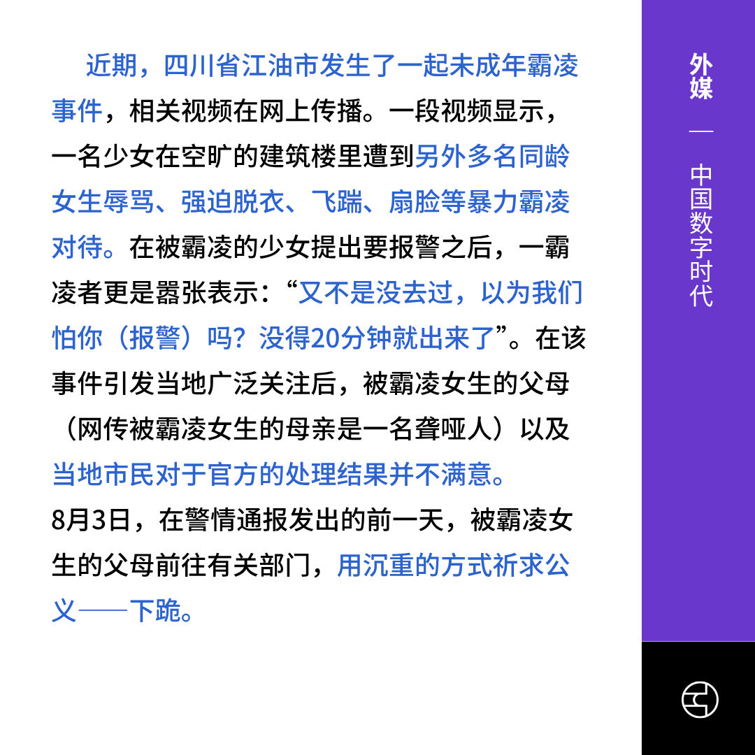 四川江油校园霸凌事件;港媒:千人抗议,特警镇压
