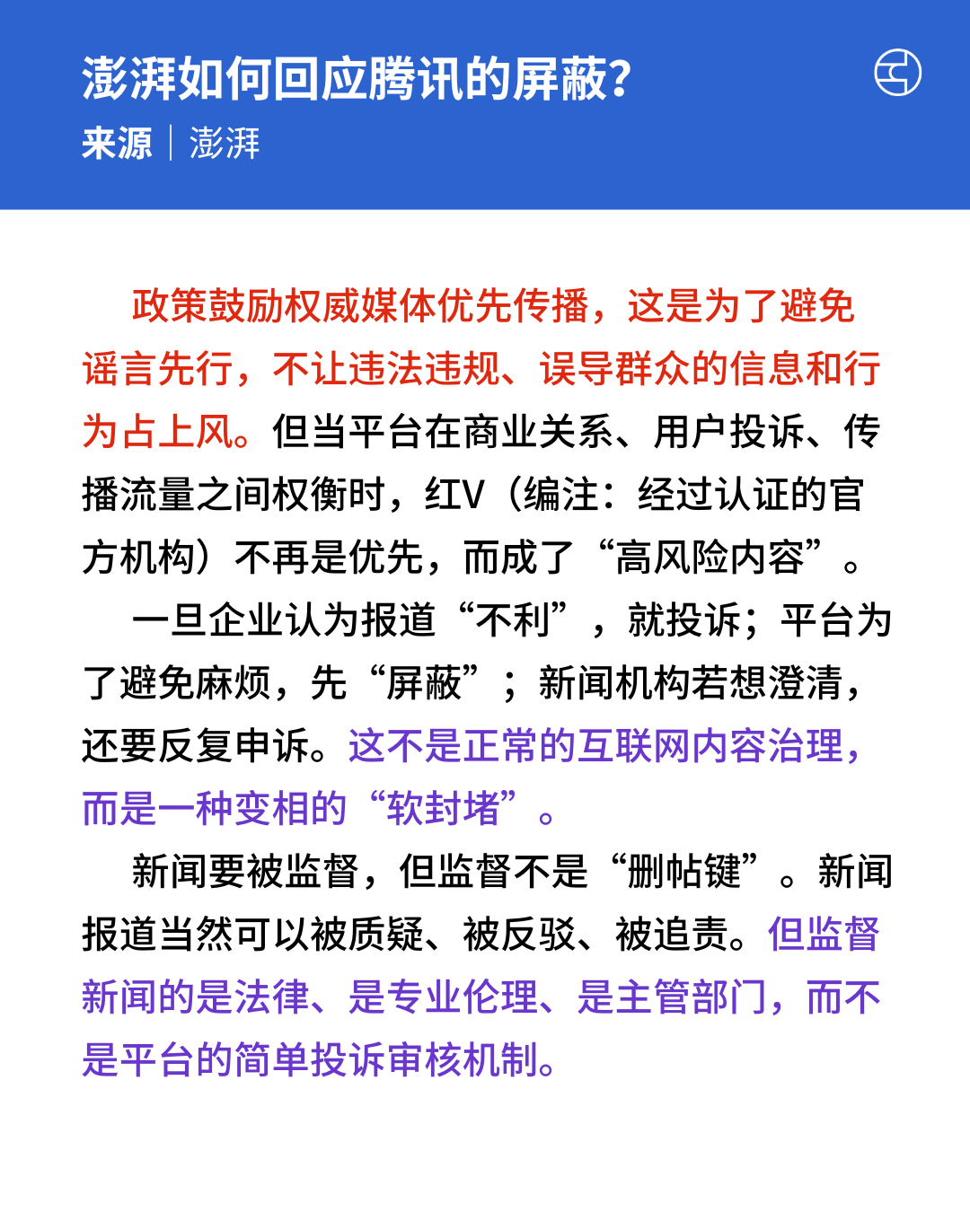 《澎湃》旁白|随意屏蔽新闻报道,腾讯何以成了媒体的“总编辑”